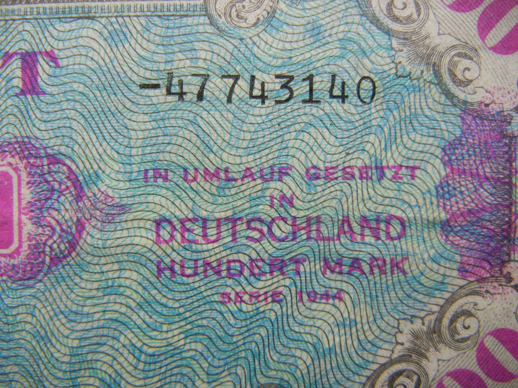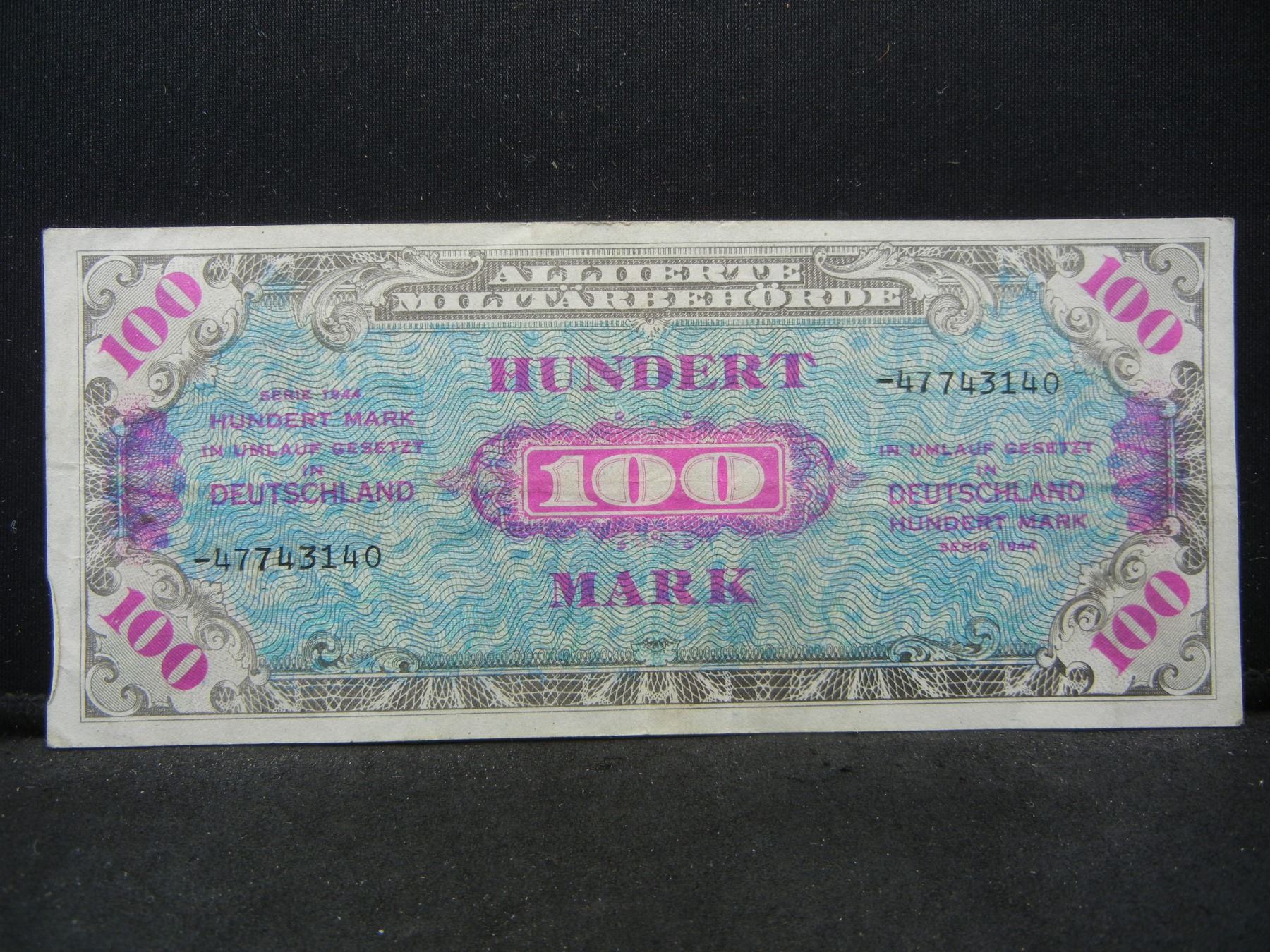 Very nifty 100 Mark WWII Allied Military Currency. Big denomination for the time. Nice Extremely Fine.