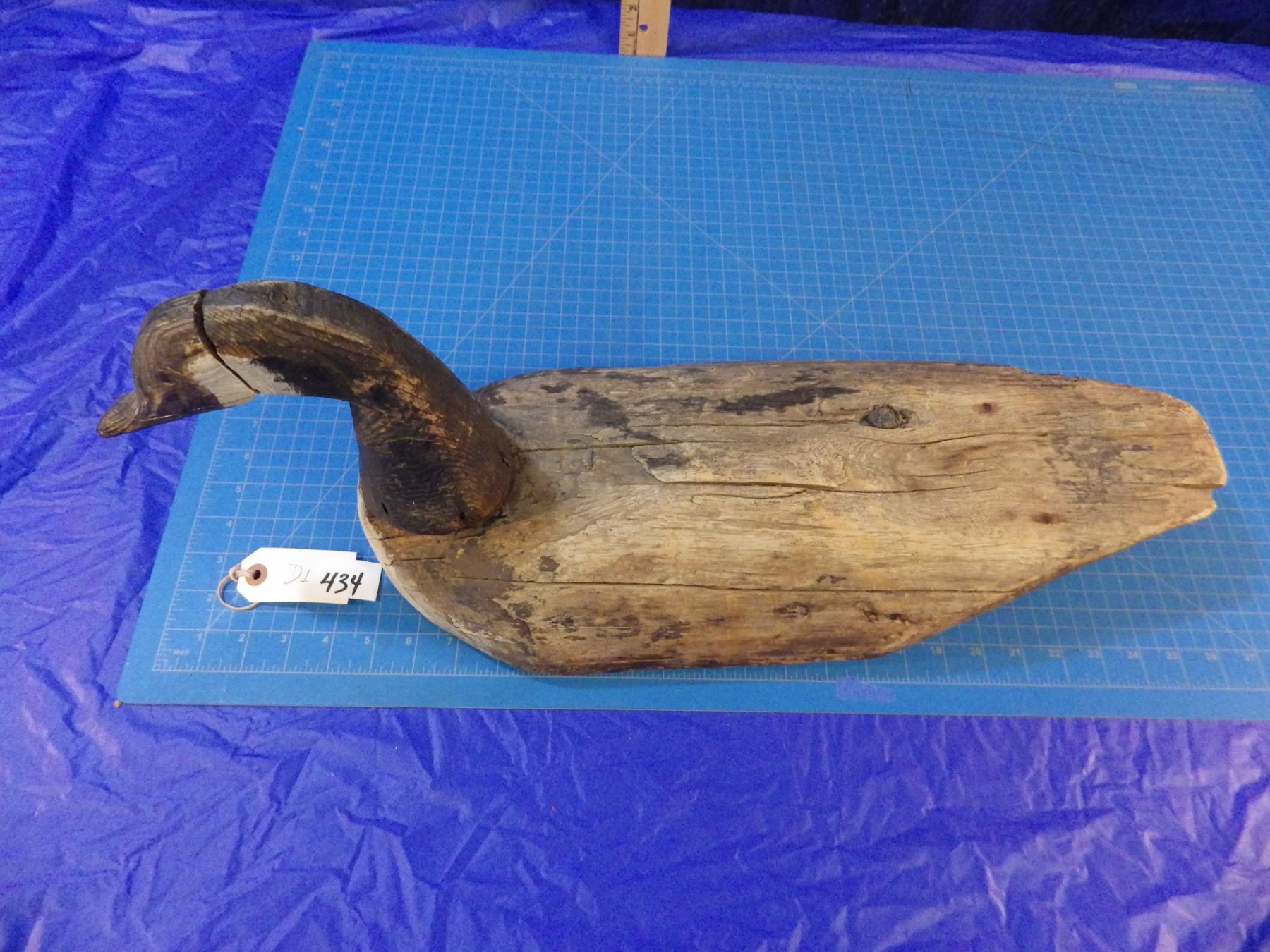Very old decoy of a Canada goose, thought to have come from Nova Scotia, condition comparable to its age with repairs to beak -- CONSIGN # D1