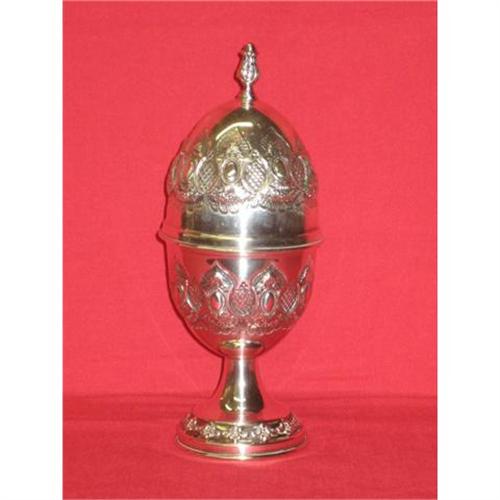 WE are offering this beautifully Decorated with hand engraved designes and goldplated interior in excellent condition and marked 57-925. H:9" W:3.75 the wiedest and 11 OZ weight.
