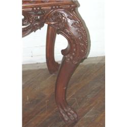 Very ornate reproduction console table with claw feet. Measures 31" tall, 54" long, and 22 1/4" wide.