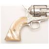 Very rare Colt Sheriff’s Model Single Action revolver, factory engraved, .44-40, 4” barrel, old re-nickel finish, two-piece pearl grips, S/N 84244, matching visible numbers, in overall very good condition displaying the majority of its old re-finish, crisp action, sharp engraving and markings, beautifully iridescent pearl grips and pictured in the Book of Colt Engraving by Sutherland & R.L. Wilson on page 252, which also statescaliber, engraving as a standard pattern, nickel finish and pearl grips with further notation as shipped to G.L. Wild & Bro., March 1883 (however, no separate factory letter accompanies this lot). Also, according to Wilkerson and Hoyt’s book “The Official Record Colt Single Action Army Revolver, 1873-1895”, page 339, only one engraved .44-40 caliber revolver without ejector, nickel finished and with a 4” barrel wasreported in the archives records between serial #1-164,100. (Antique). Est.: $10,000-$20,000.