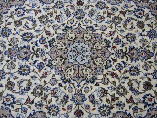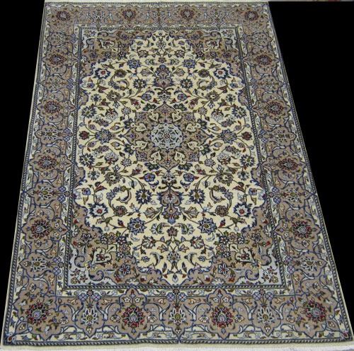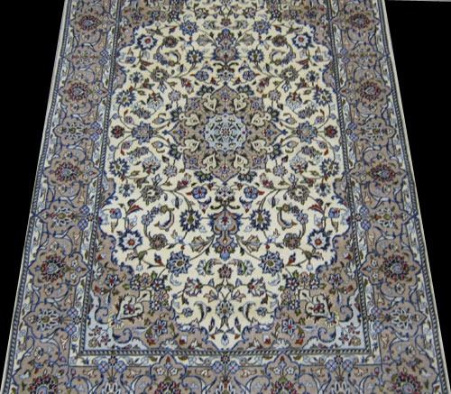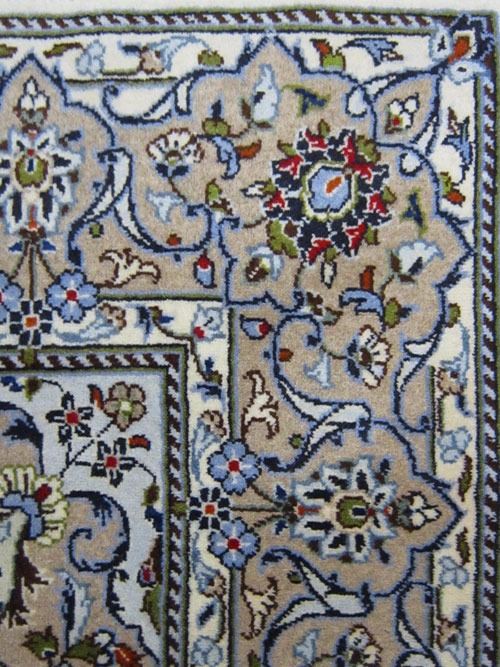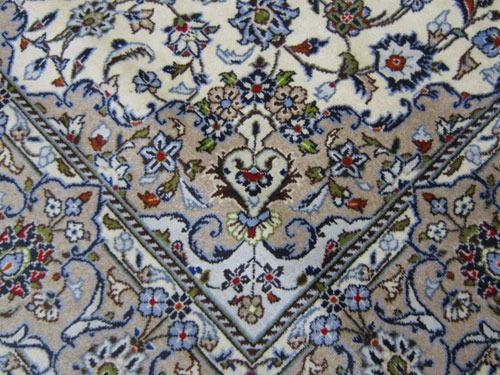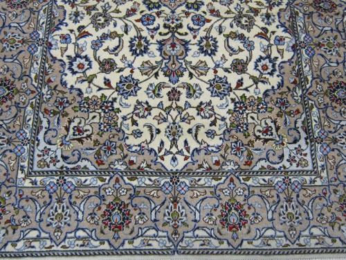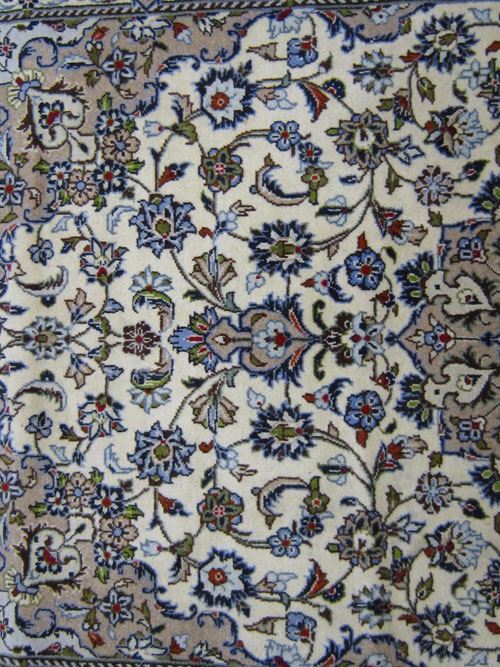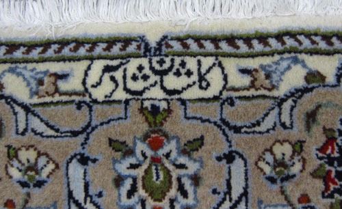 Collectible signed vegetable dye baby lamb's wool pile on cotton foundation. given the fact that Persian rugs are product of a desert-like environment, it is no wonder that primary colors are used in the majority of the rugs produced as a means of absorbing the harsh and intense sunlight in order to be soothing to the eye. Therefore it is rather rare to come across rugs with such predominant champagne colored background and soft tones. For indeed the city of Kashan sits right at the edge of the desert. This is an exceptionally intricate and exquisite piece with its beautiful shah-abbasi floral pattern. The silk highlights in particular are so well pronounced that give such an illusion as if they are raised above the rugs surface. this is a magnificent royal Kashan. The creases in this rug are due to fold. They are not a defect. Moreover this rug is woven with the rarest high quality wool. Size: 7 feet 2 inches X 4 feet 5 inches. Country of origin: Iran.
