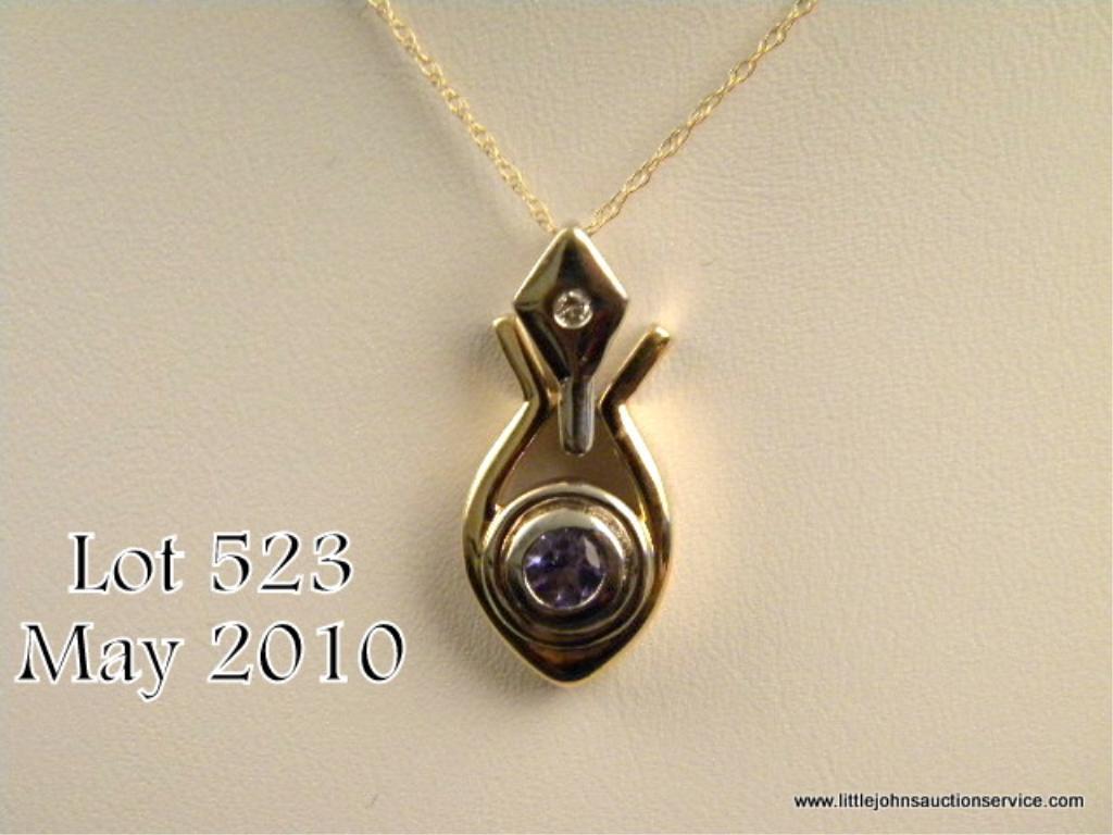 Very stylish 14 karat two-tone gold ladies pendant set with a nice round Tanzanite a fine diamond. Retail $995.00 Estimate $200-$400 Nice