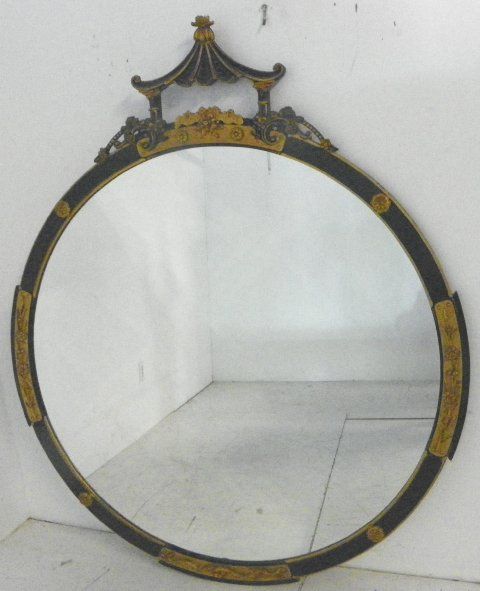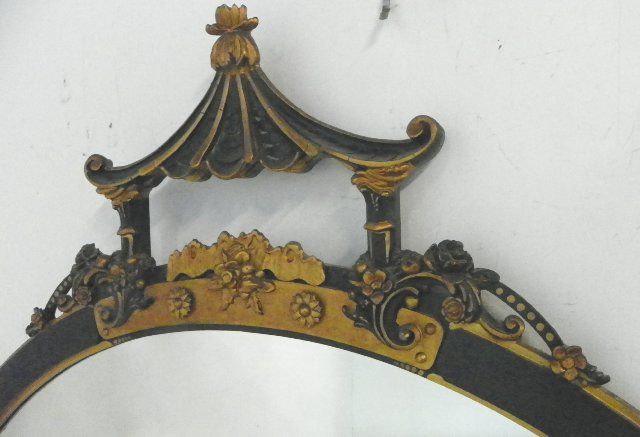 Black & gold framed in the Chinese Chippendale manner. Approx. 70" H x 40" W Please read our terms of sale.