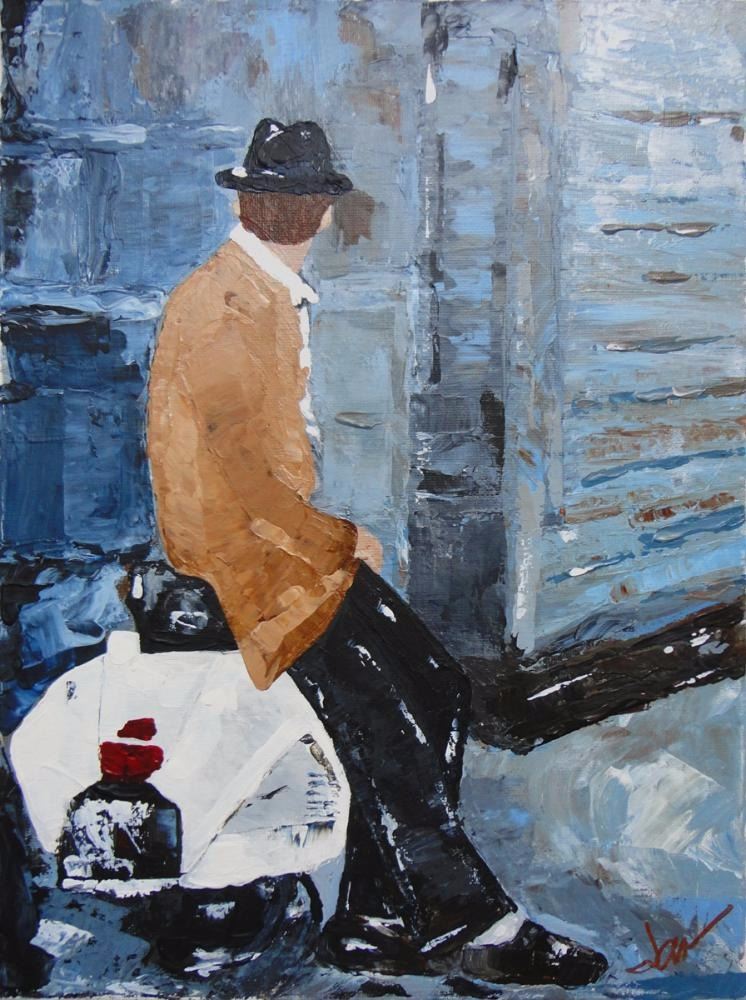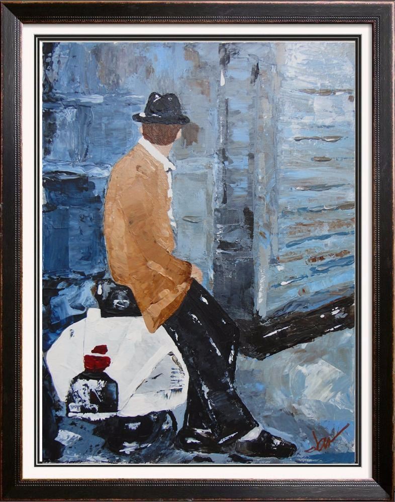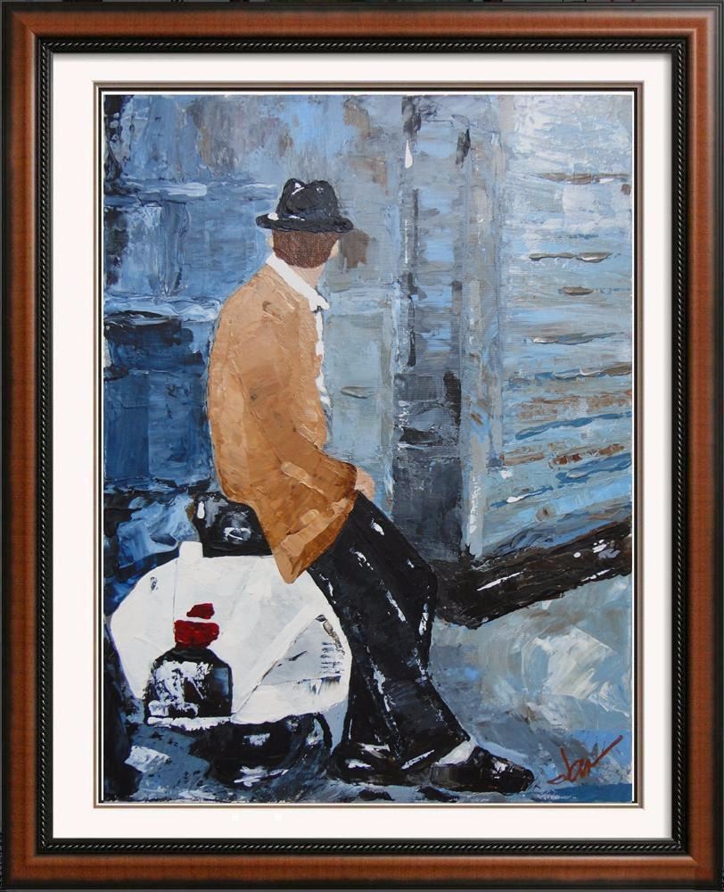 Janier | Title of Art: Vespa | Medium: Hand Signed Original Acrylic on Canvas | Edition #: Original | Unframed Size: 16 x 12 | Framed Size: Offered Stretched. Framing presentation if shown is for concept only. If you need assistance with custom framing, call the experts at ArtForSale