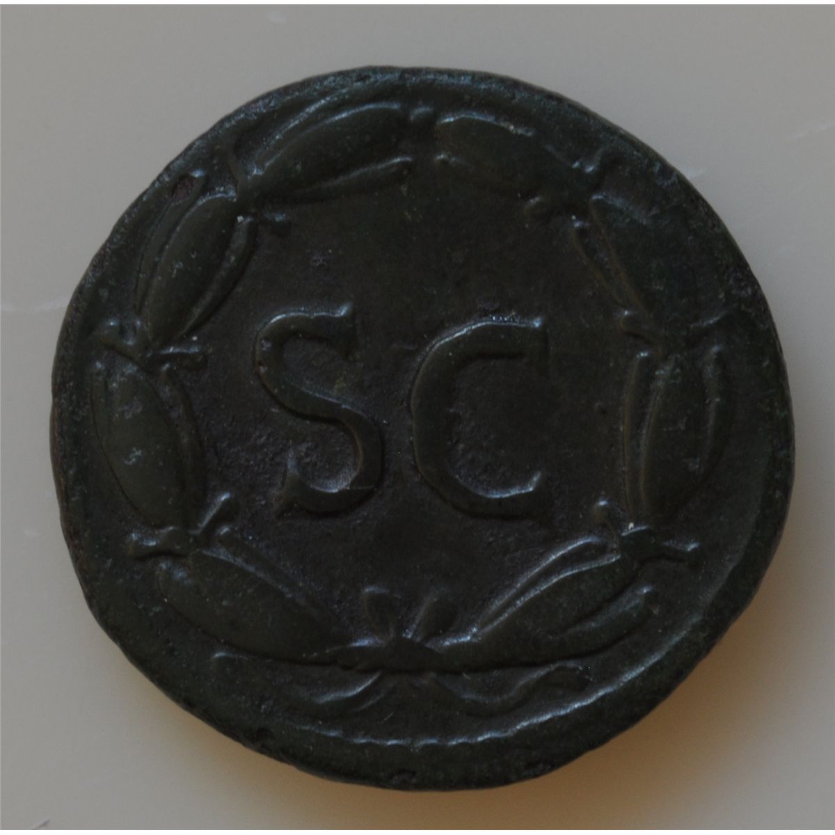Vespasian (69-79 AD ) - AE-As Samosata in Commagene Obv: Laur. hd. l. IMP CAESAR VESP AVG Rev: S C in laurel wreath. 7.0 grams. S-2367. Black patina, VF.