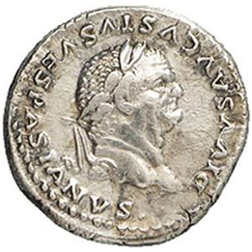 Vespasiano (69-79). Denario. D/ Testa laureata a destra. R/ SC su scudo sorretto da due capricorni. Sotto, globo. RIC (Tito) 63. gr. 3.31 R. AG. qSPL/BB+.
