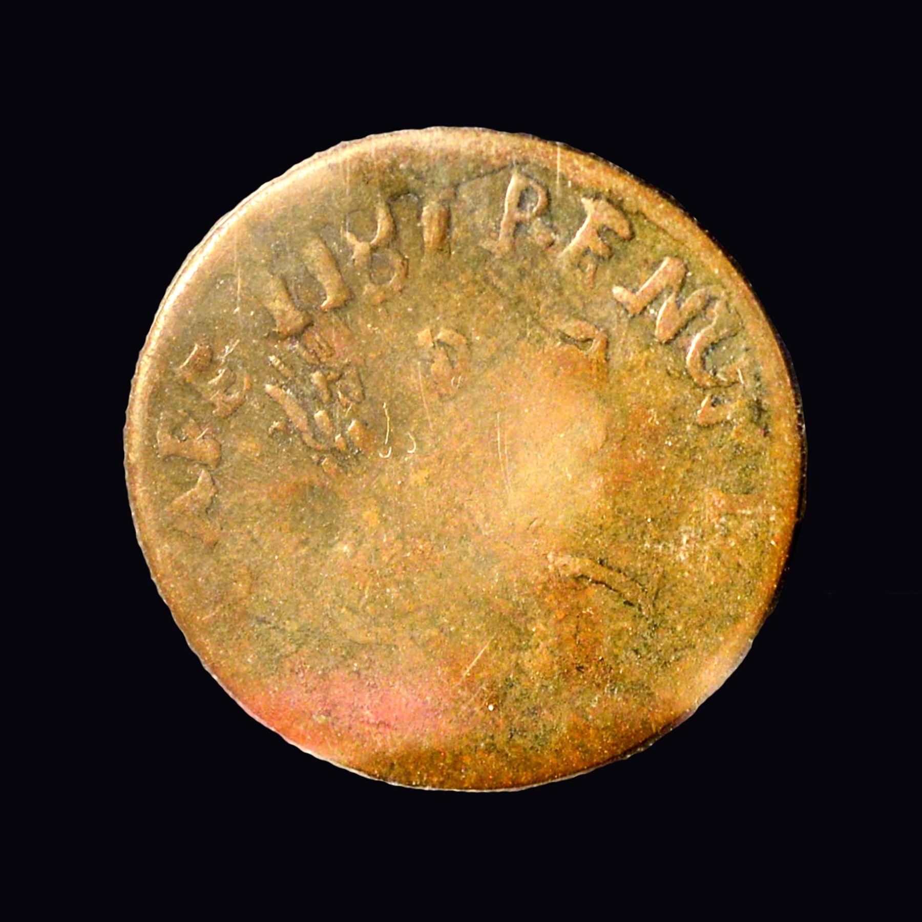 Even dark chocolate colour. Very srtong and sharp face, but weak on the periphery, so little of the obverse legend is visible. Reverse is typical, with extreme central weakness, but much of legend is present, including a clear and full date. In all, rather attractive for the type, and conservatively graded.