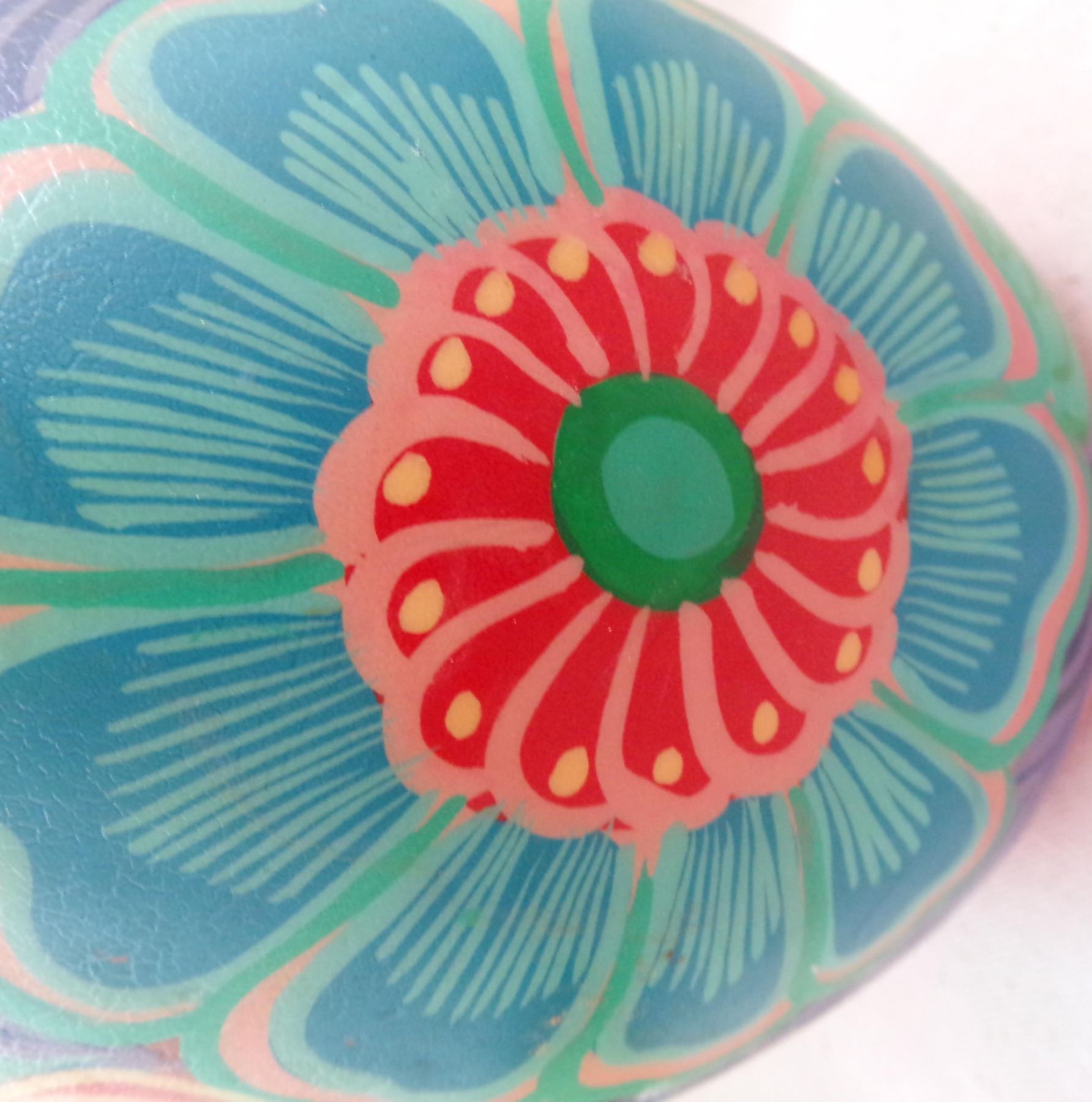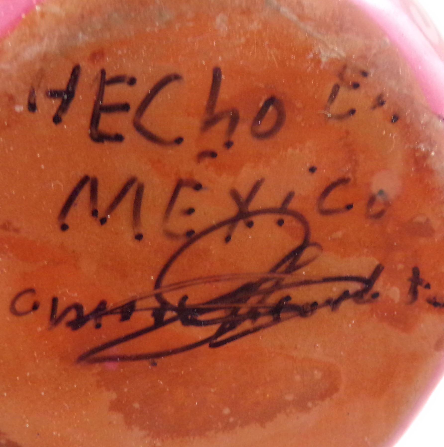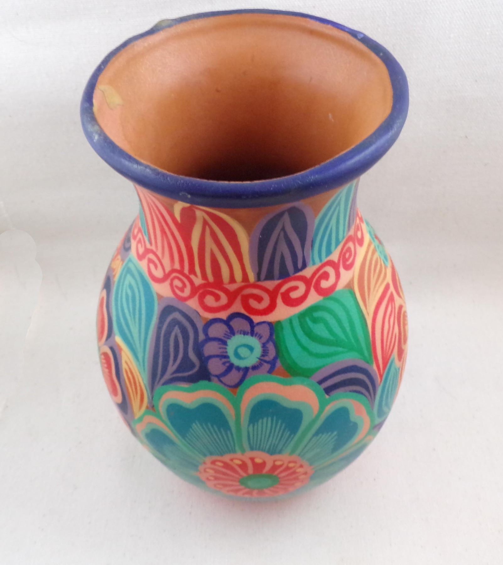 Vibrant Mexican Pottery Vase, measures 8.5"H x 6"D, signed on the bottom by the artist, absolutely gorgeous colors in floral motif