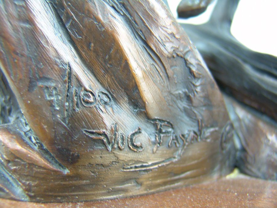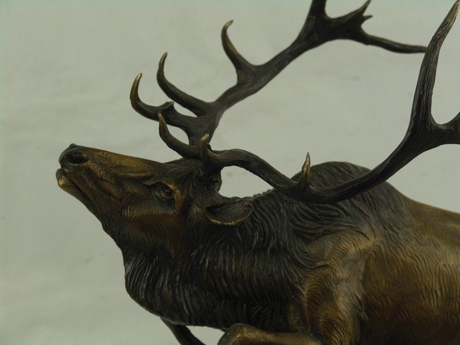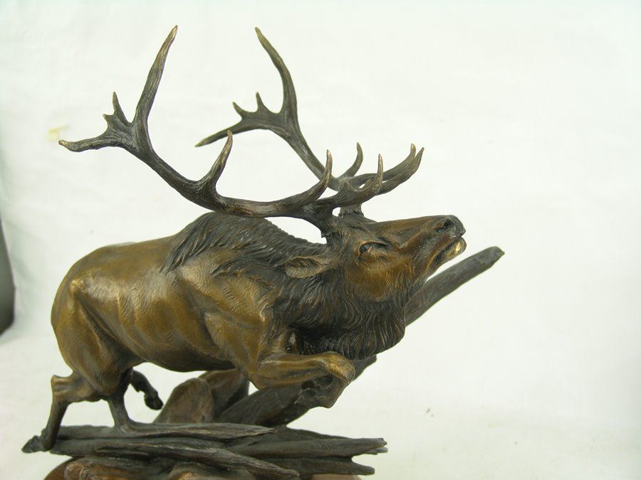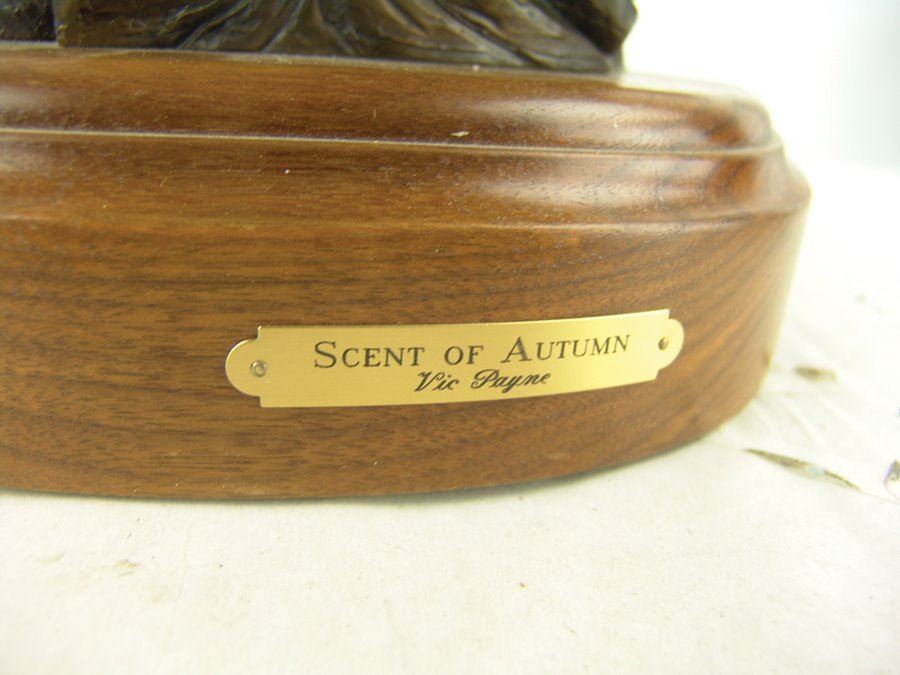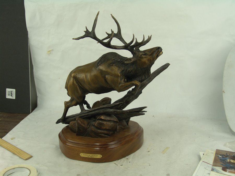 Beautiful limited edition (4/100) bronze sculpture of a bull elk titled "Scent of Autumn". Very good condition. On rotating walnut base.,Ca. 1980s,19" x 16" x 12"