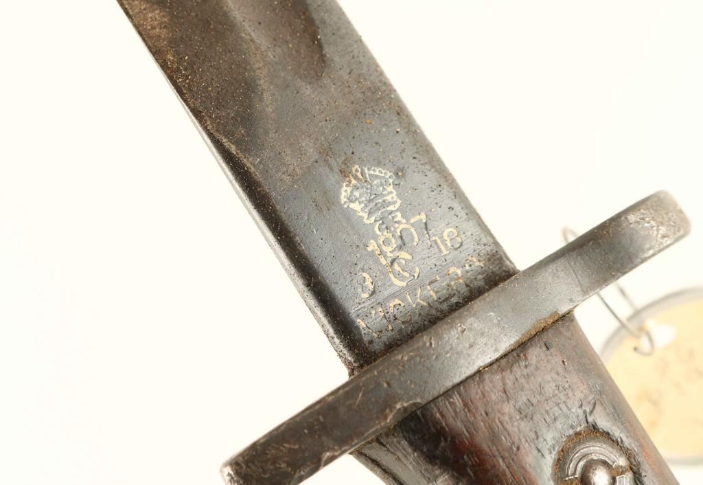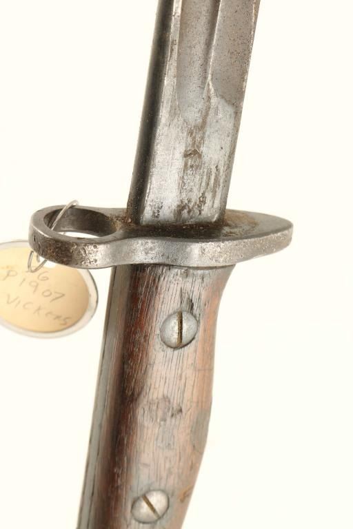 This is Really, really RARE ! This bayonet was manufactured by the famous Machine Gun Manufacturer Vickers LTD, also known as Vickers, Sons & Maxim, and later Vickers-Armstrongs, Ltd. This company designed and manufactured the famous Vickers Machine gun, as well as other small arms, and later got into Aviation. The bayonet is marked VICKERS in full, together with the correct King's Crown G.R. over 1907, together with all the usual acceptance marks and proofs. From The John F Sukey Collection