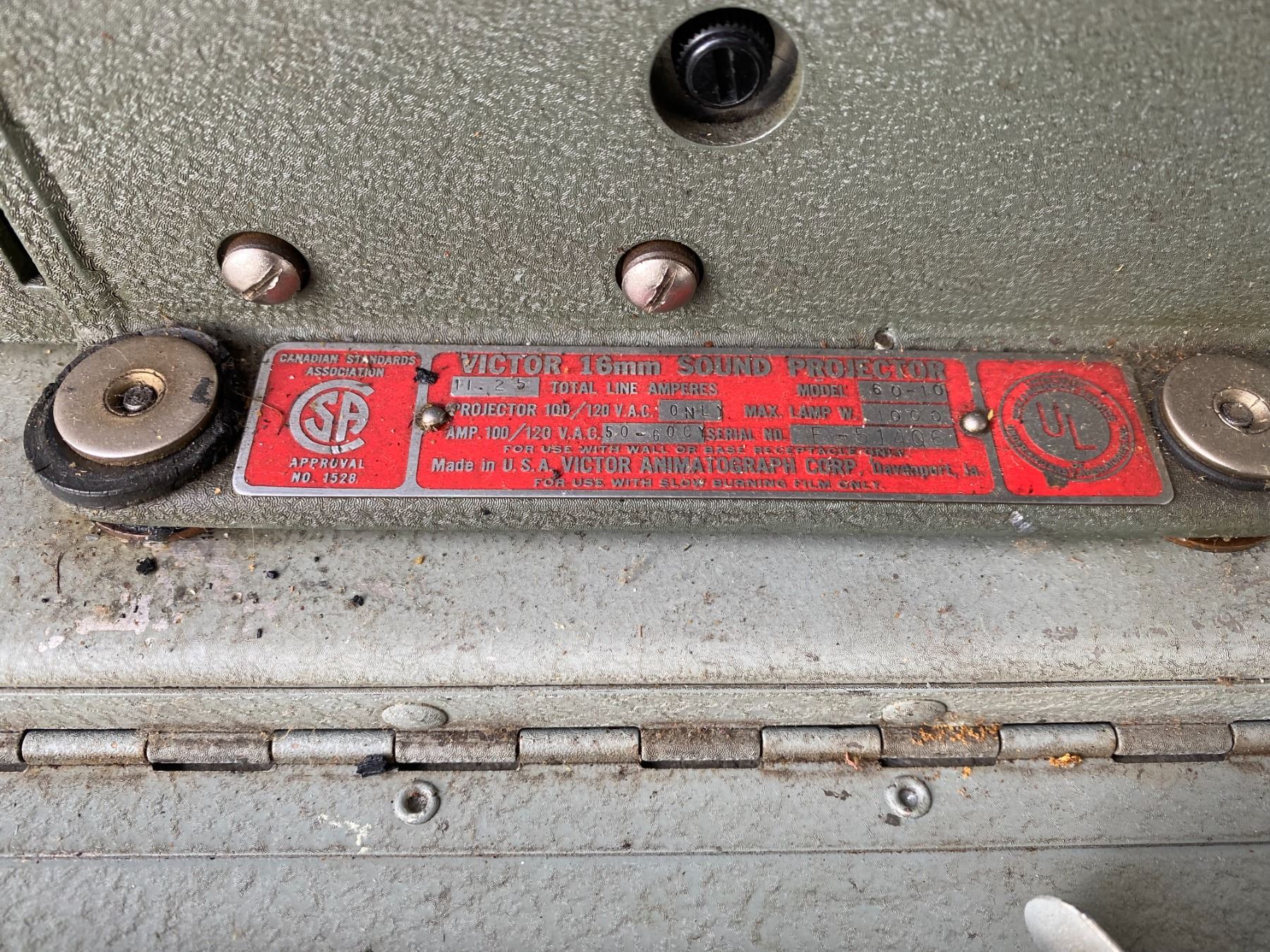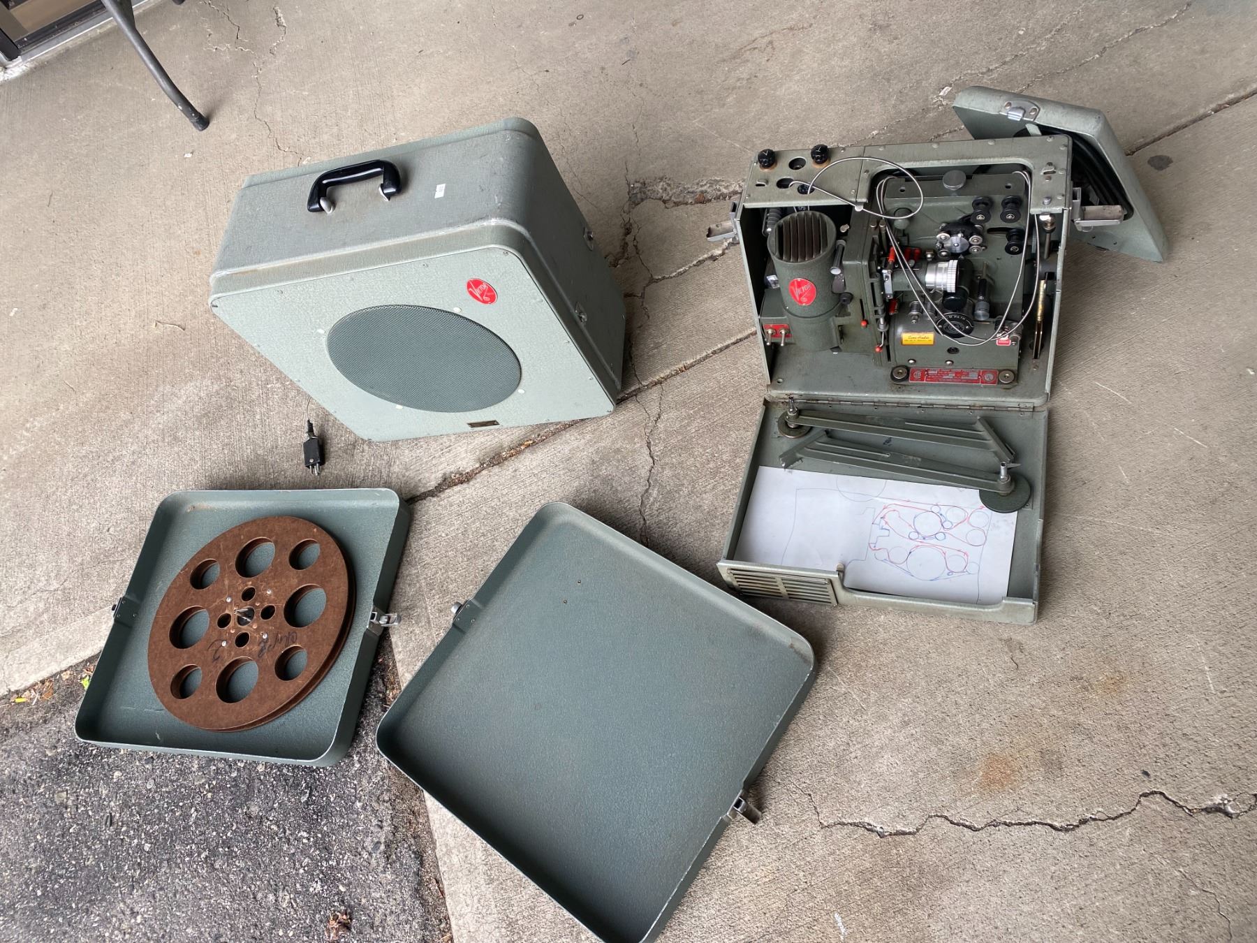 Victor 16mm sound projector, speaker, lenses and bulbs