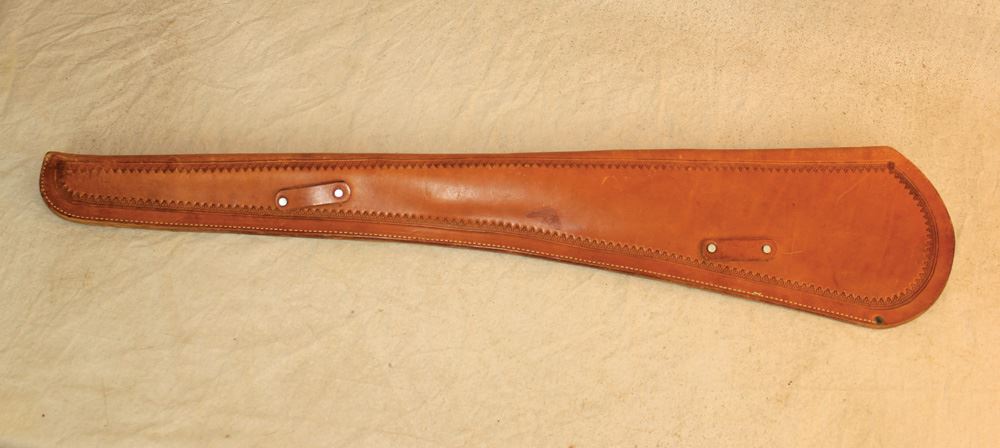 A mint and unused rifle scabbard with deep and very collectable Montana maker's mark.