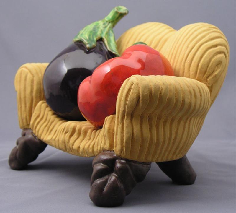 Canadian [b. 1935] MENAGE A TROIS; 1994 ceramic 7 x 11.25 x 7.5 in. (17.8 x 28.6 x 19.1 cm) signed & dated Note: Illustrated p. 32 "Victor Cicansky: Joyful Harvest", Galleries West (Fall/Winter 2004 edition).