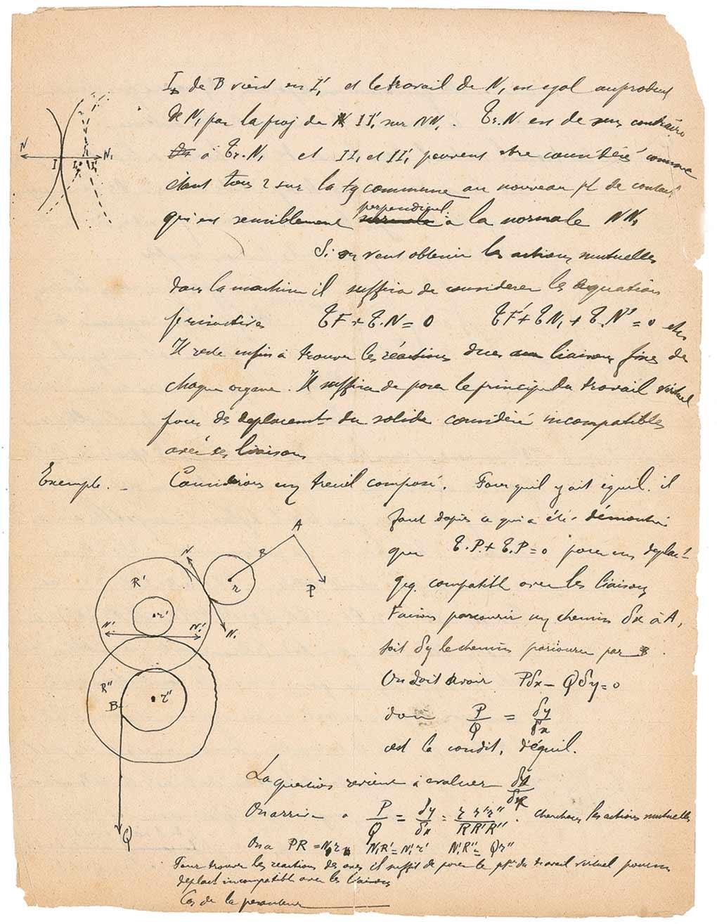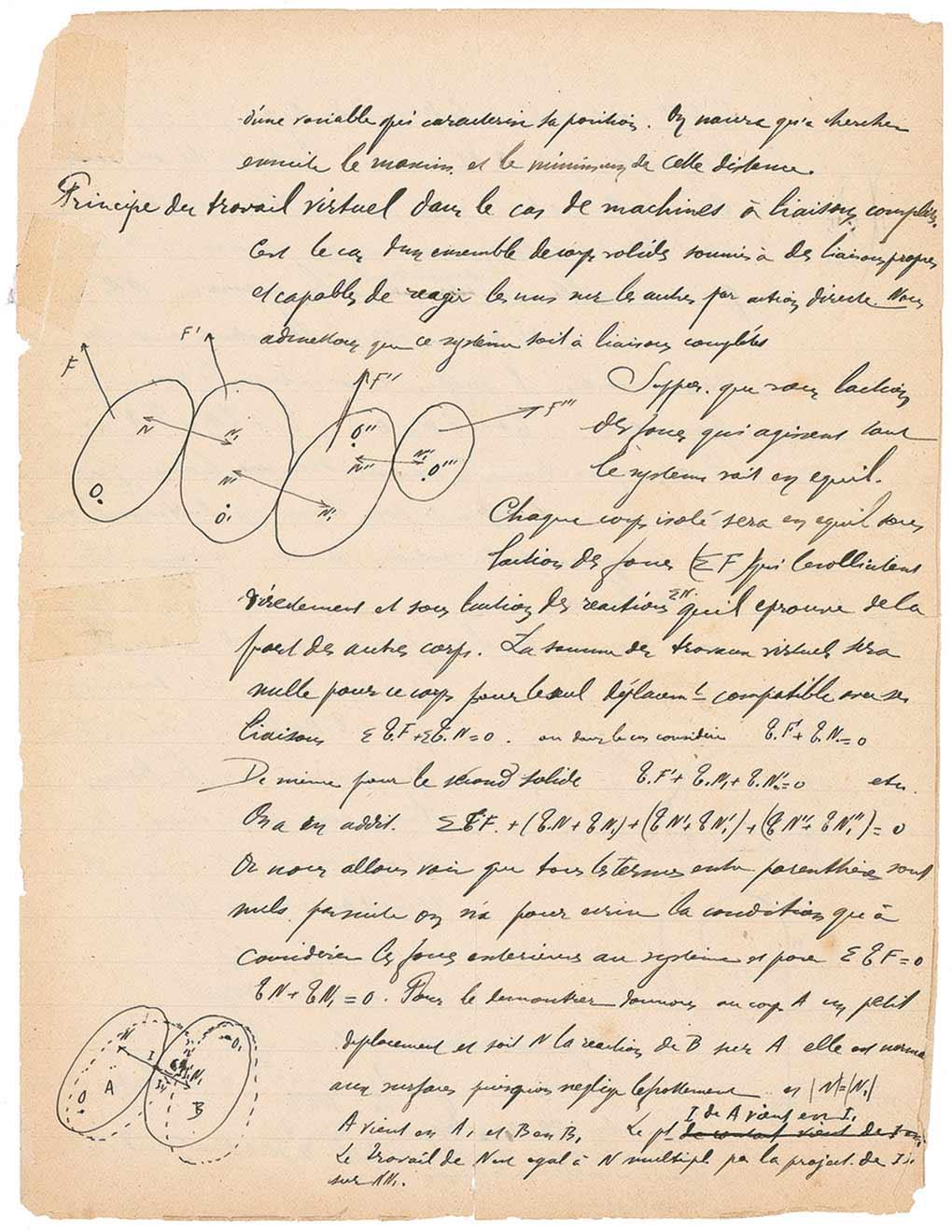 French chemist (1871–1935) who shared the 1912 Nobel Prize in Chemistry for his research related to organic compounds. Unsigned scientific notes and diagrams on both sides of a 6.5 x 8.5 off-white lined sheet. Four labeled diagrams are drawn next to blocks of text and mathematical equations. Repaired corner lightly affecting small portion of text and sketch, scattered light toning and edge wear and partial fold separations, otherwise very good condition.