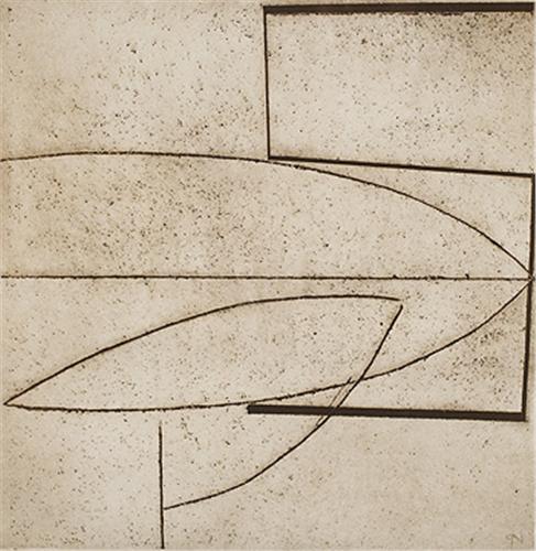 Victor Pasmore By What Geometry 1974 etching 15.5" x 15.25" Signed and dated and numbered 32 from the edition of 60 bottom margin. Signed and titled in the stone. Framed.