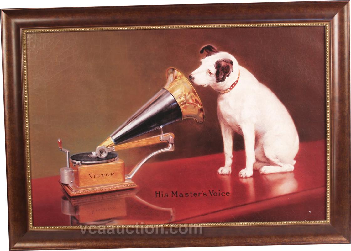 Victor Phonograph Player "His Masters Voice" Print w/ Nipper, reproduction in frame - 41" x 29"