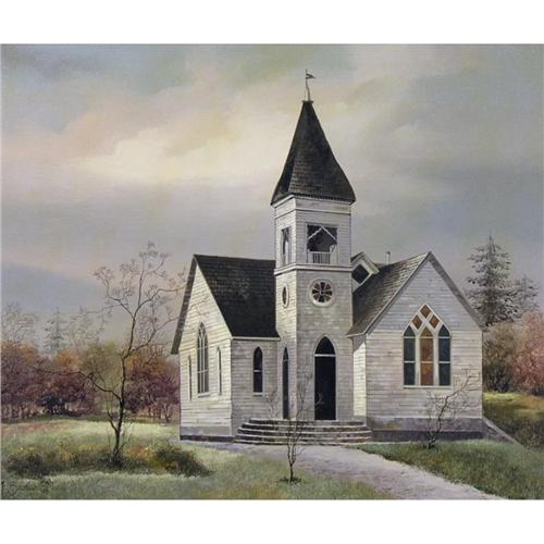 Filipino/Canadian [1934-2003] COUNTRY CHURCH oil on canvas 20 x 24 in. (50.8 x 61 cm) signed