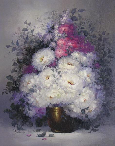 Filipino/Canadian [1934-2003] FLORAL STILL LIFE IN A GOLD POT; 1979 oil on canvas 30 x 24 in. (76.2 x 61 cm) signed & dated