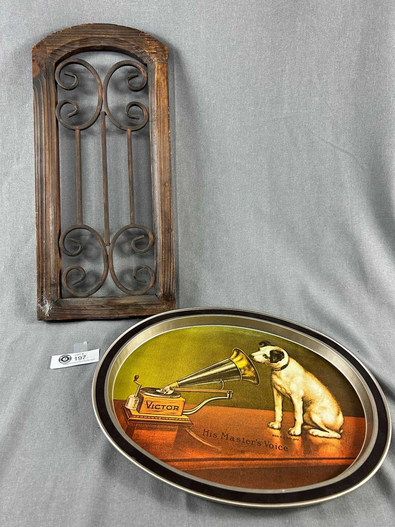 Victor Serving Tray & Metal/Wood Wall Décor. Approx. 18" & 15"