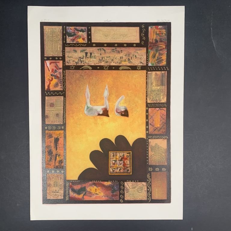 Victor Shrem's "Chai" limited edition print, signed lower right in Hebrew and lower left in English, and numbered LXVIII/CCC. This piece has a Jewish theme with Hebrew letters, and is in excellent condition.