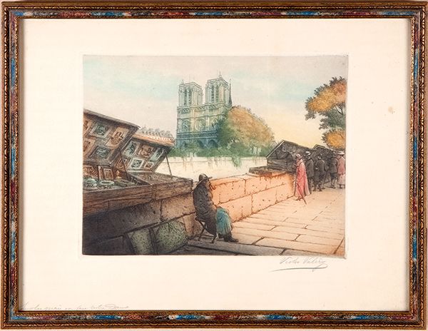 Valéry, Victor. Quais Opposite Notre Dame. Copper-plate etching, 8¼ x 6½ in., signed in pencil at lower right. Matted and framed to 13¼ x 10¼ in. French artist Victor Valéry (1889-1910) made a limited number of etchings because of his early death.
