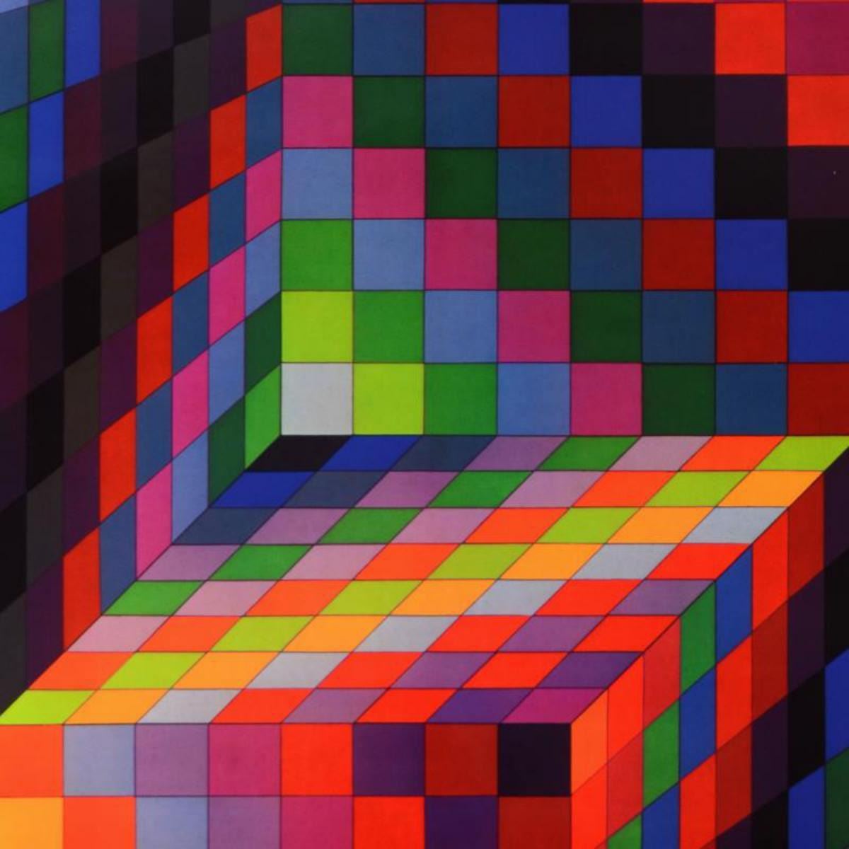 Victor Vasarely (1908-1997), "Axo-77" Heliogravure Print, Titled Inverso.