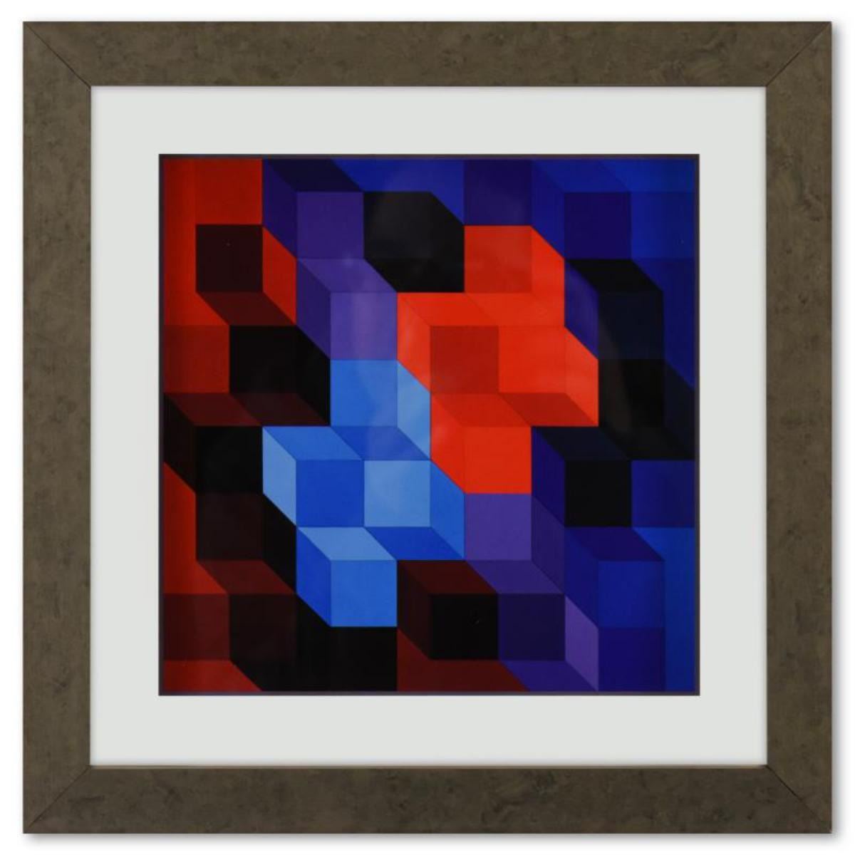 Victor Vasarely (1908-1997), "Deuton - RB de la série Hommage A L'Hexagone" Framed 1971 Heliogravure