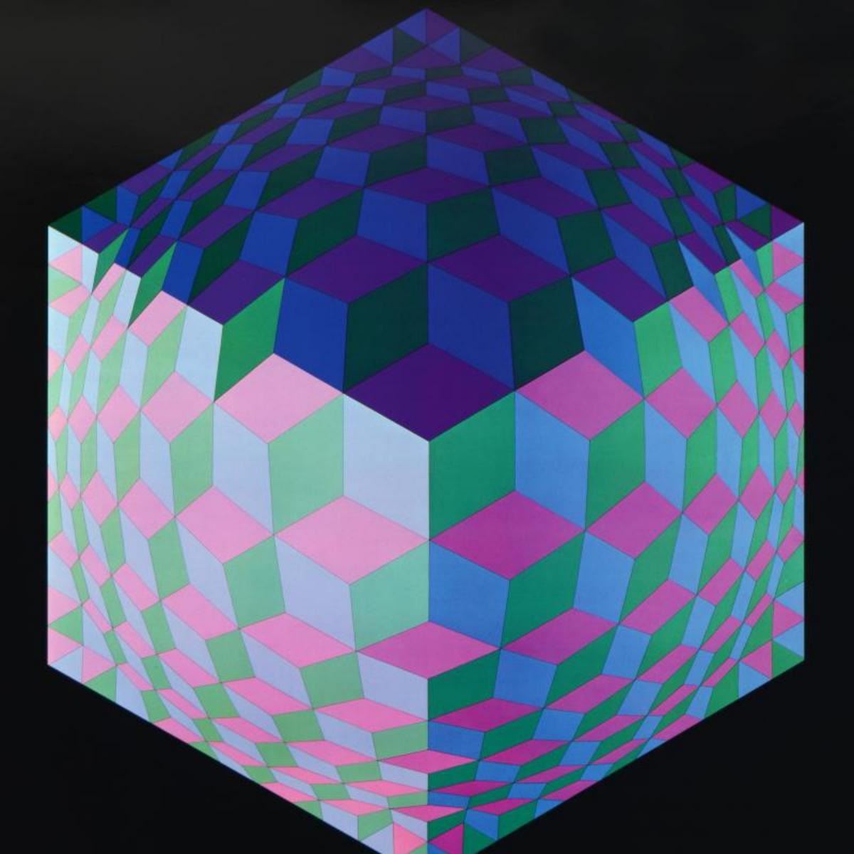 Victor Vasarely (1908-1997), "Hat Leg" Heliogravure Print, Titled Inverso.