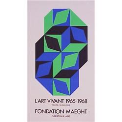 L' ART VIVANT, 1968, screenprint poster, 28 x 15 3/4", Foundation Maeght, soft creases, one discoloration line in one of the green areas. STARTING BID $20. ESTIMATE $20 TO $1000