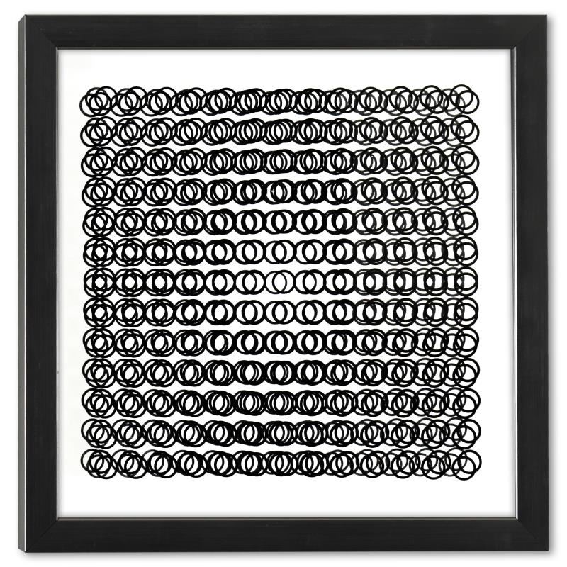 "Trois Dimensions Optique de la série Cinetiques" is a dimensional artwork, published in 1973, by Victor Vasarely (1908-1997). This piece comes custom framed, with a letter of authenticity and with a 1976 Vasarely paperback. Measures approx. 11.5" x 11.5" (frame), 9" x 9" (image).