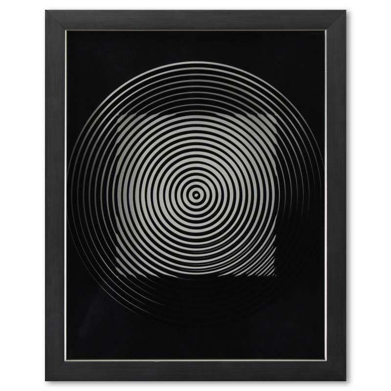 "Trois Dimensions Optique de la Serie Cinetiques" is a dimensional artwork, published in 1973, by Victor Vasarely (1908-1997). This piece comes custom framed, with a letter of authenticity and with a 1976 Vasarely paperback. Measures approx. 10.5" x 13" (frame), 8.5" x 11" (image).