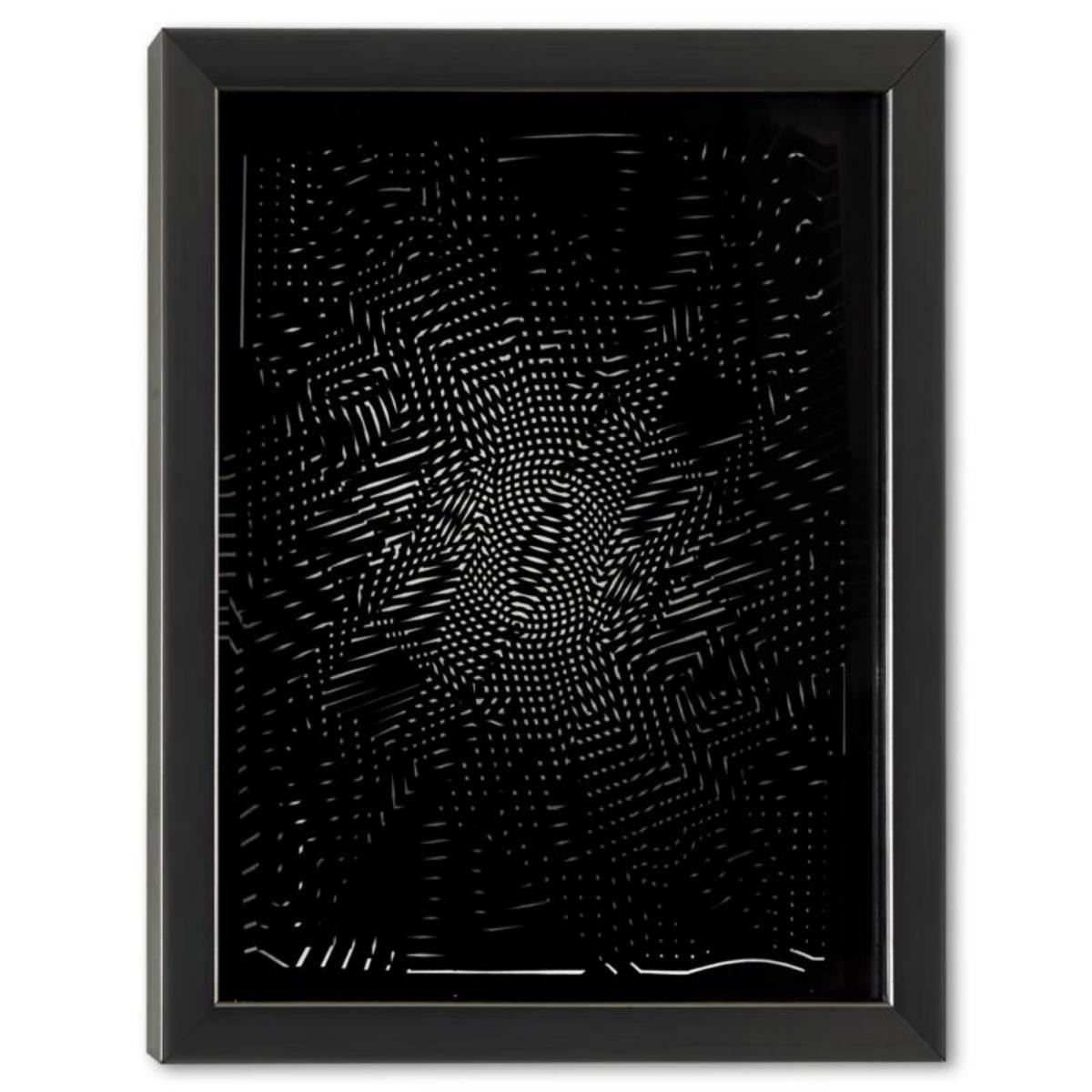 "Trois Dimensions Optique de la série Cinetiques" is a dimensional artwork, published in 1973, by Victor Vasarely (1908-1997). This piece comes custom framed, with a letter of authenticity and with a 1976 Vasarely paperback. Measures approx. 10.5" x 13" (frame), 8.5" x 11" (image). Reference #: 252997