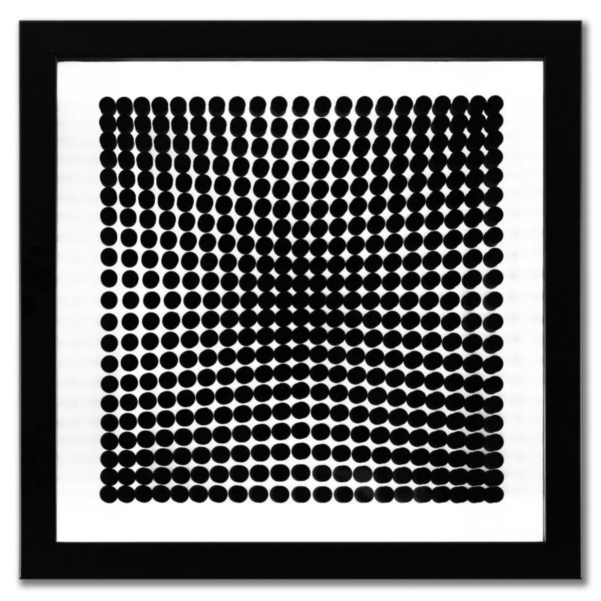 "Trois Dimensions Optique de la série Cinetiques" is a set of 8 dimensional artworks, published in 1973, by Victor Vasarely (1908-1997). These pieces come custom framed, with a letter of authenticity and with a 1976 Vasarely paperback. Measures approx. 11.5" x 11.5" (frame), 9" x 9" (image). Reference #: 255474