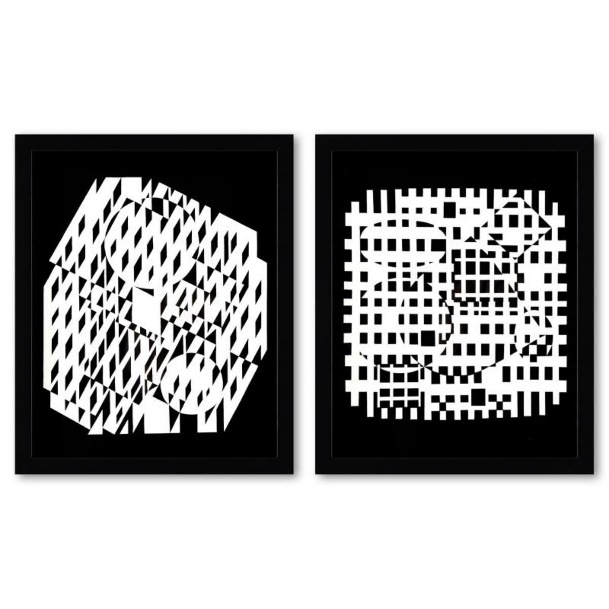 Victor Vasarely (1908-1997), "VAH-NEG et Nethe de la serie Croises (Diptych)" Framed 1973 Heliogravu