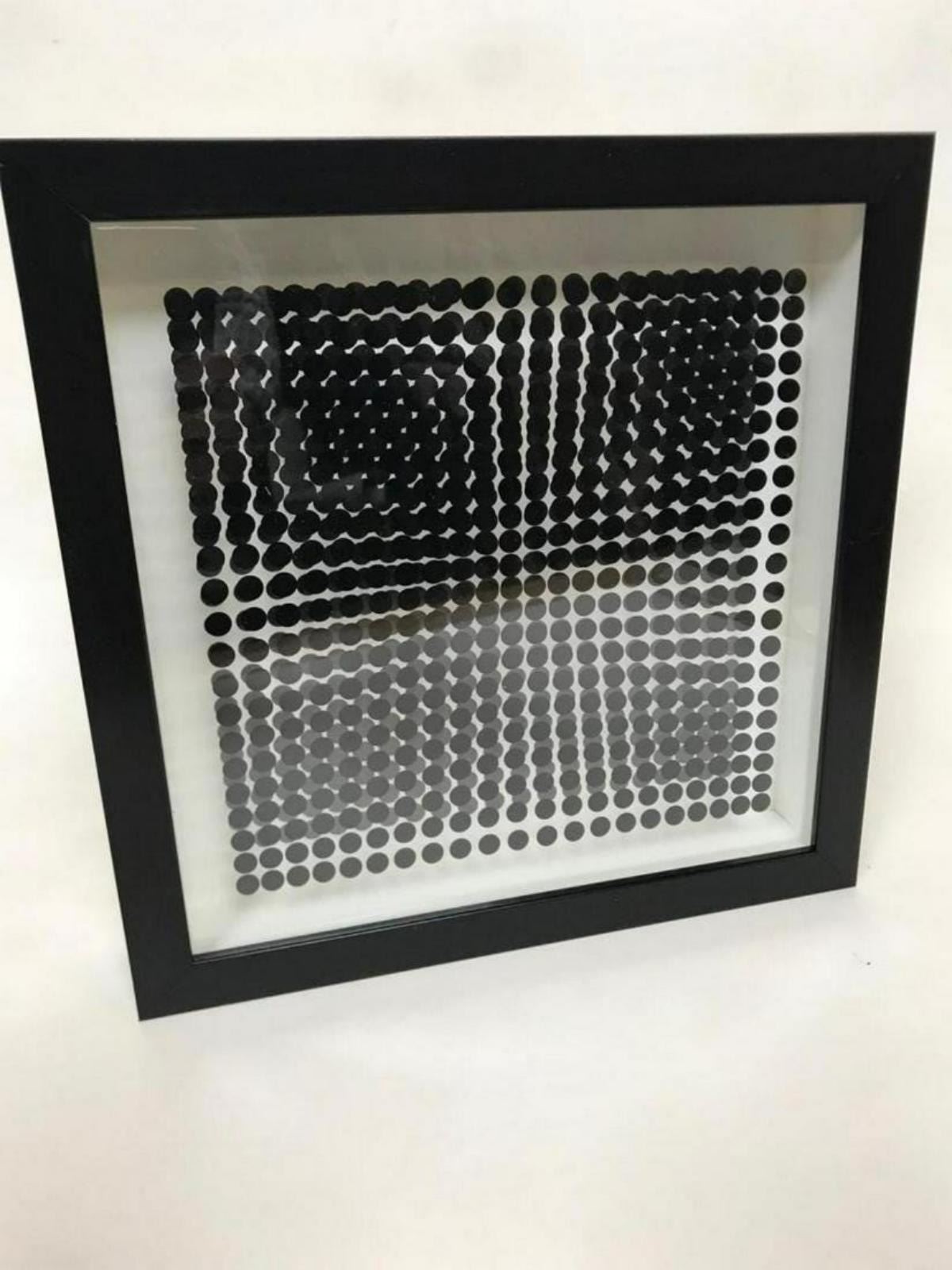 Artist: Victor Vasarely. Medium: 3D Wall Sculpture/object. Title: Cinetiques. Size (Unframed): . Size (Framed): 13" x 11". Certificate of Authenticity: Is included. Additional: Measures 11x13x2 inches . 2 layers- Top layer printed on clear Lucite , bottom print on paper. From the portfolio Vasarely Cinetiques. Published by Edition Du Griffon Neuchatel. Circa 1973. Printed in Switzerland. Reference# 14363.