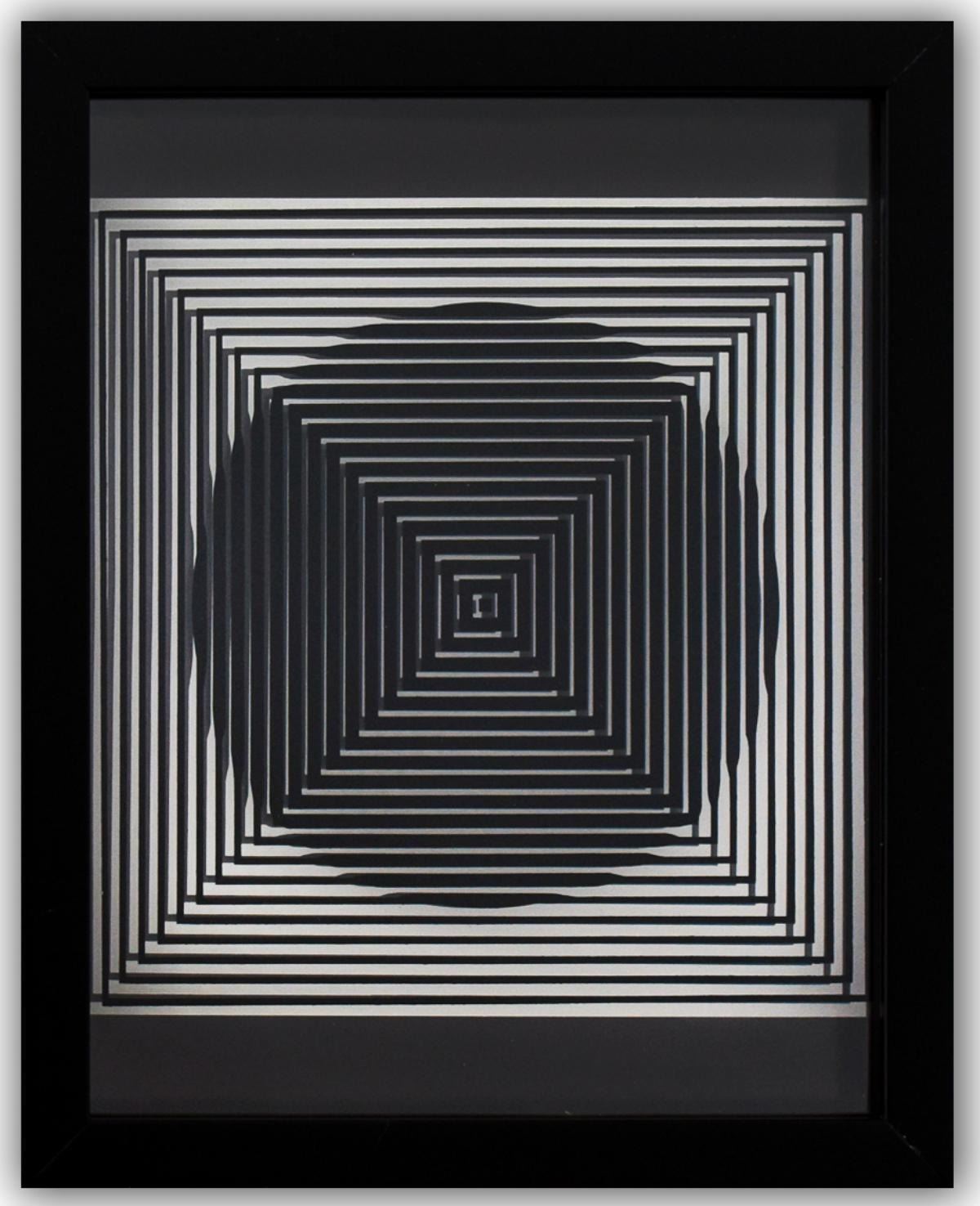 Artist: Victor Vasarely. Medium: 3D Wall Sculpture/object. Title: Cinetiques. Size (Unframed): 11" x 9". Size (Framed): 13" x 10.5". Additional: Custom Framed. 2 layers- Top layer printed on clear Lucite, bottom layer print on paper. From the portfolio Vasarely Cinetiques. Published by Edition Du Griffon Neuchatel. Circa 1973. Printed in Switzerland.. Reference# 200534.