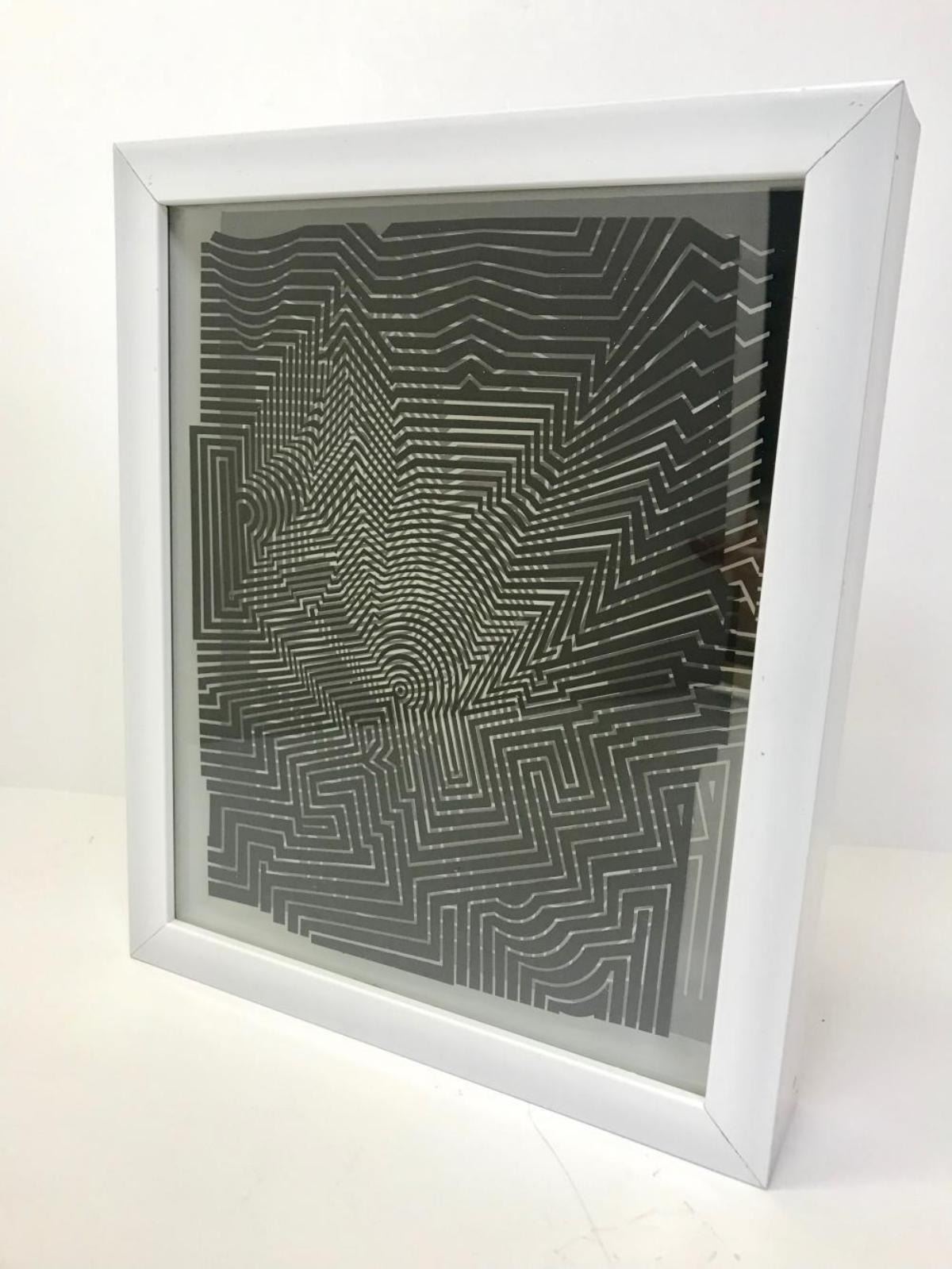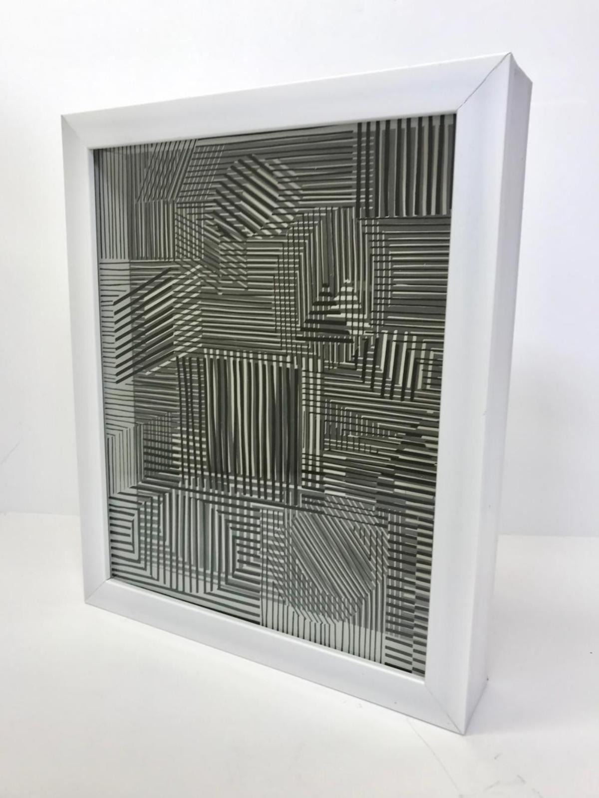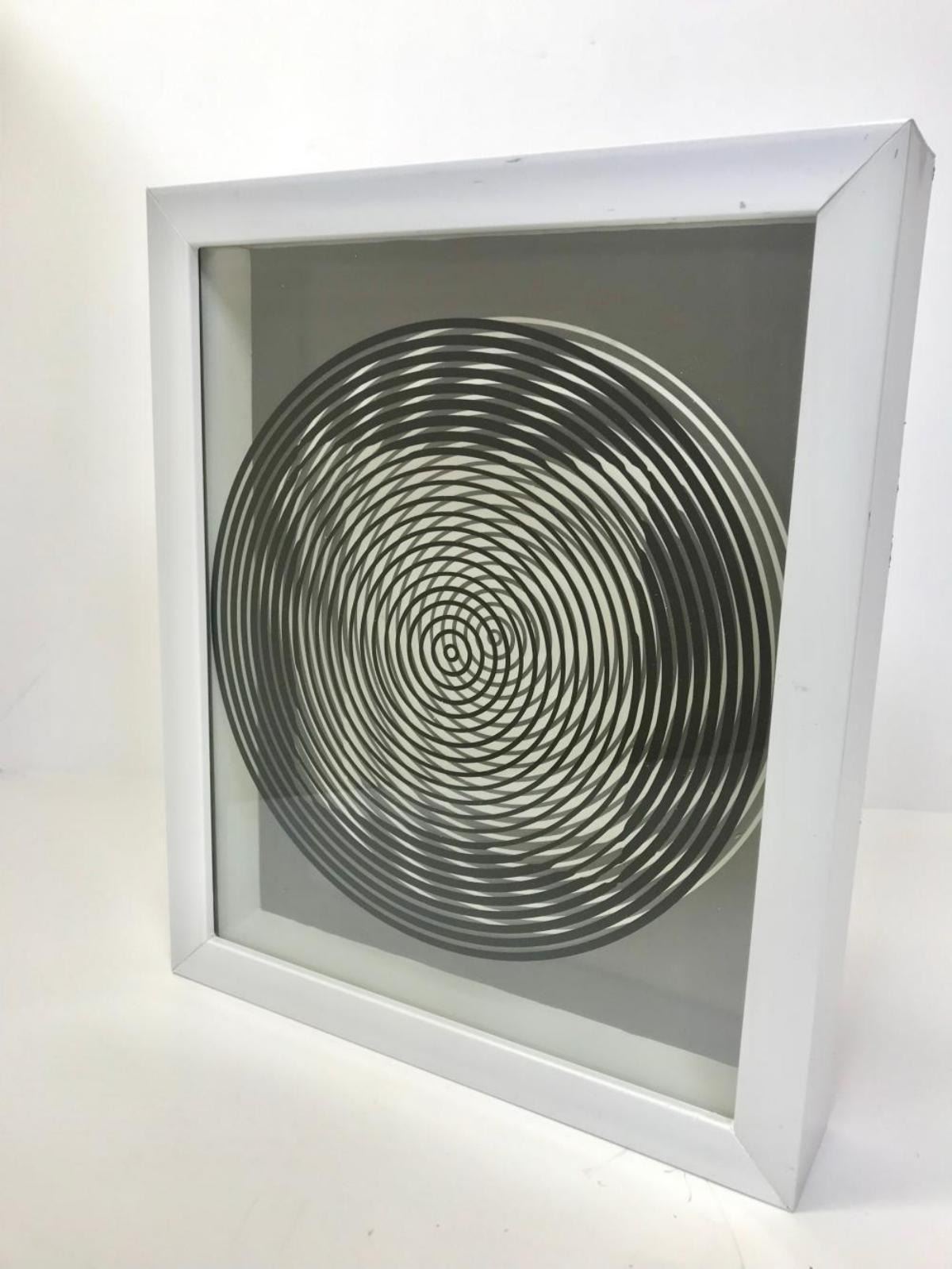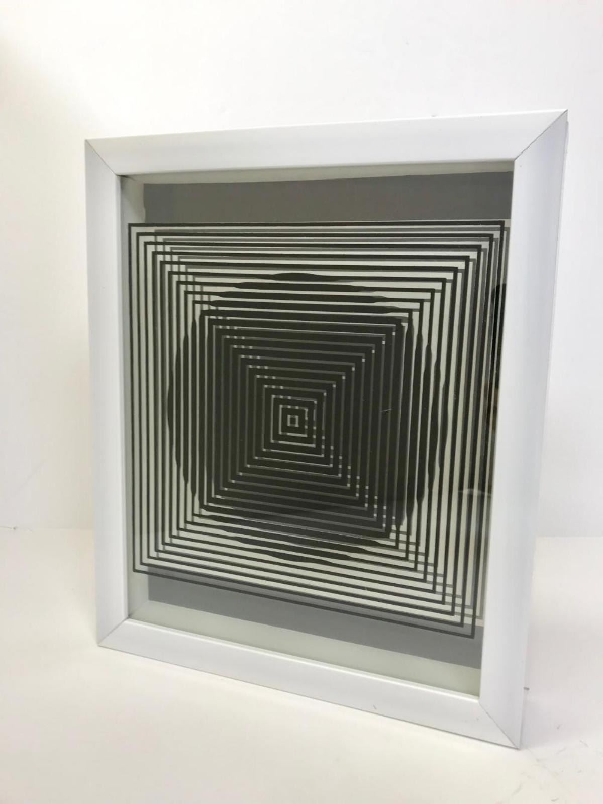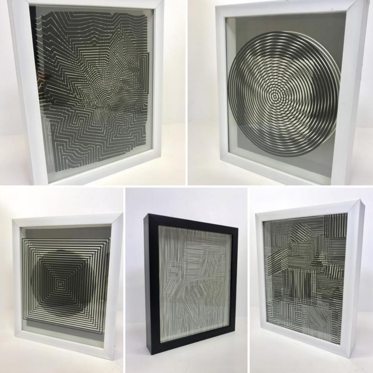 Victor Vasarely 3D Wall Sculpture/object - Set of 5. Measures 11x13x2 inches Each. 2 layers- Top layer printed on clear Lucite , bottom print on paper. From the portfolio Vasarely Cinetiques. Published by Edition Du Griffon Neuchatel. Circa 1973. Printed in Switzerland