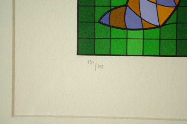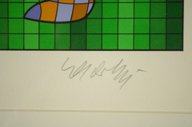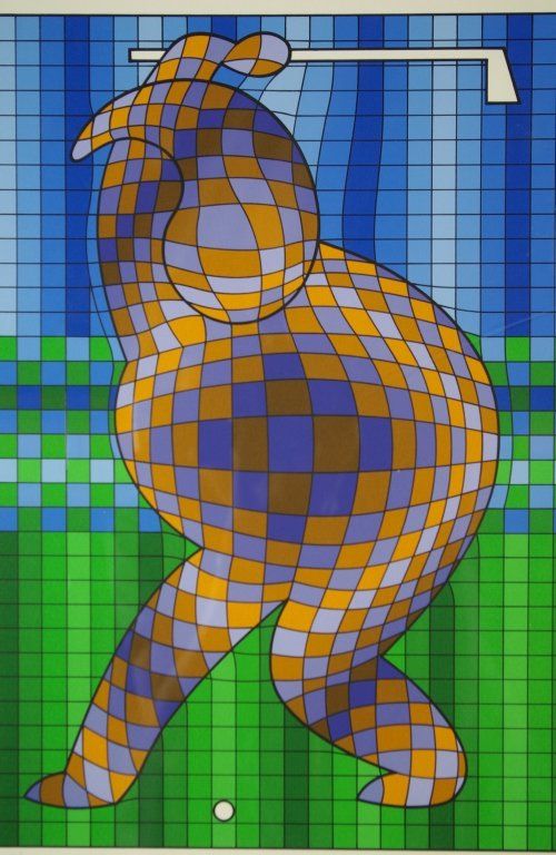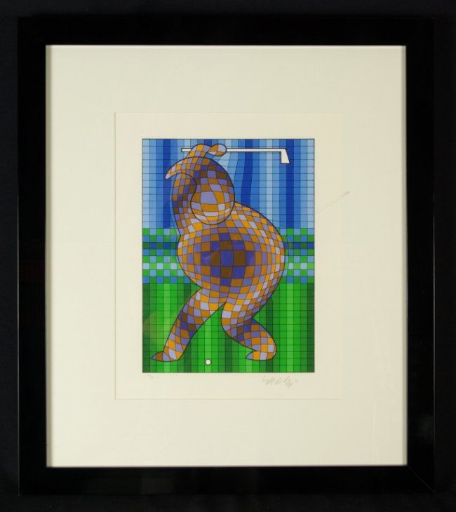 Victor Vasarely "Golfer" Limited edition serigraph, hand signed & numbered in pencil by the artist in the lower margin. Framed with Plexiglass : Black Frame, Cream Mat., overall approx 24x 27 inches Condition: Excellent