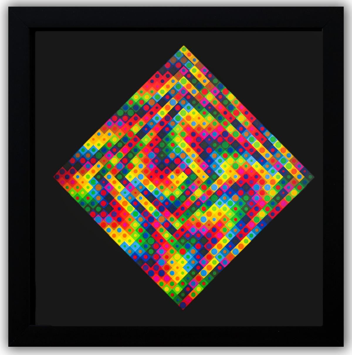 Artist: Victor Vasarely. Medium: Heliogravure Print. Title: Majus. Size (Unframed): 10" x 10". Size (Framed): 12" x 12". Additional: Custom Framed , 1971. Reference# 200572.