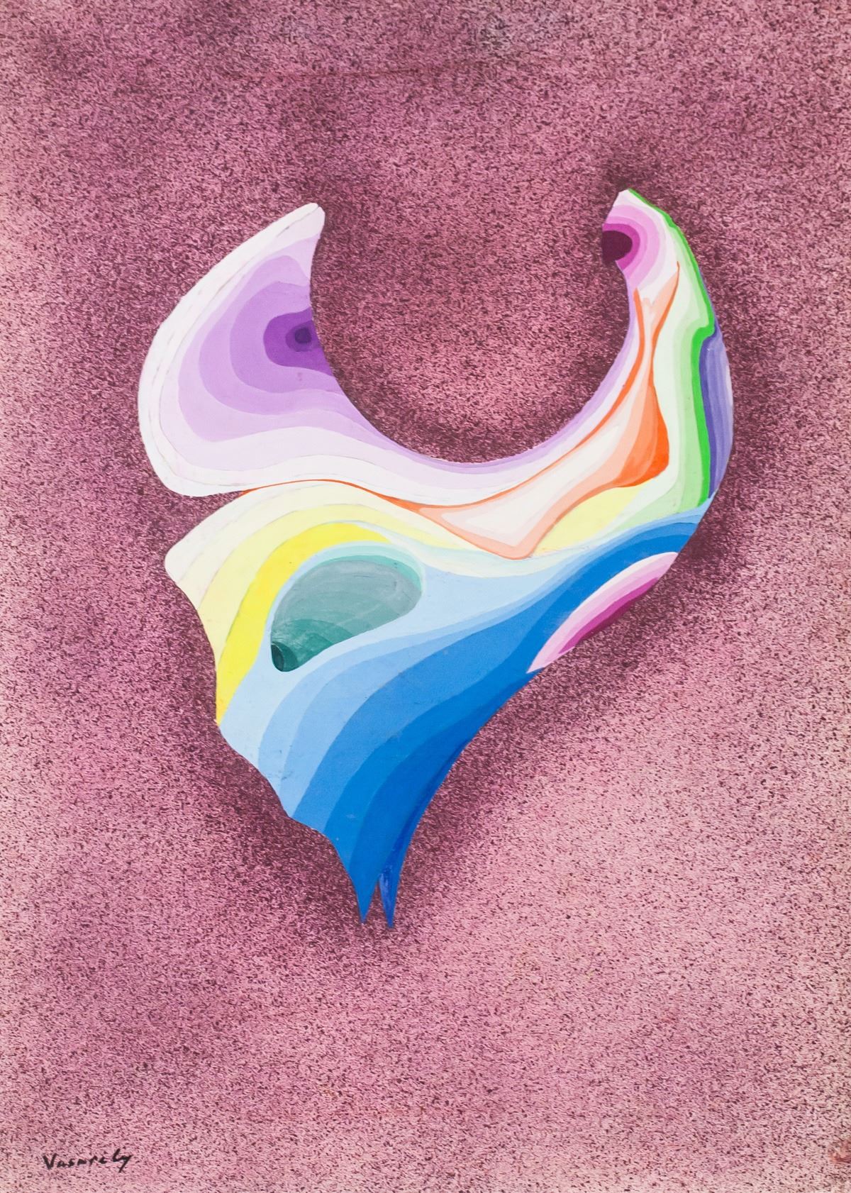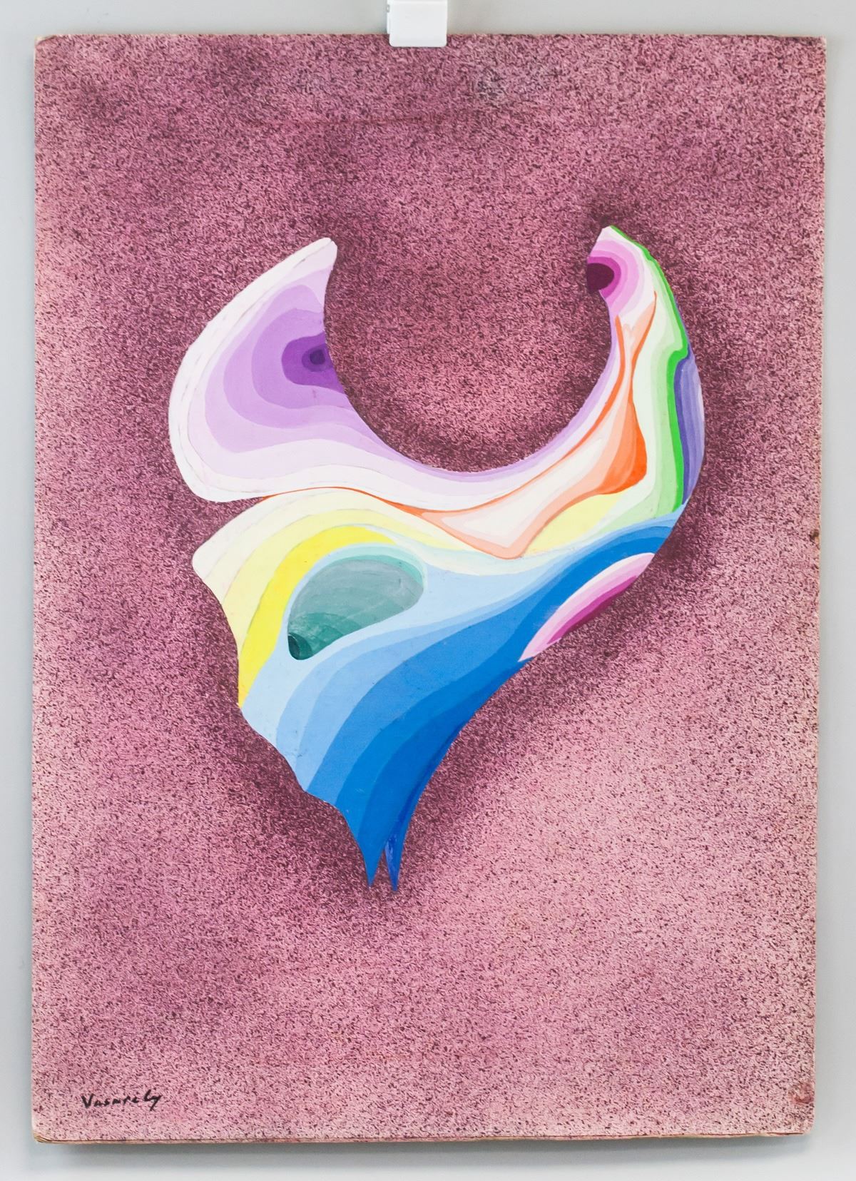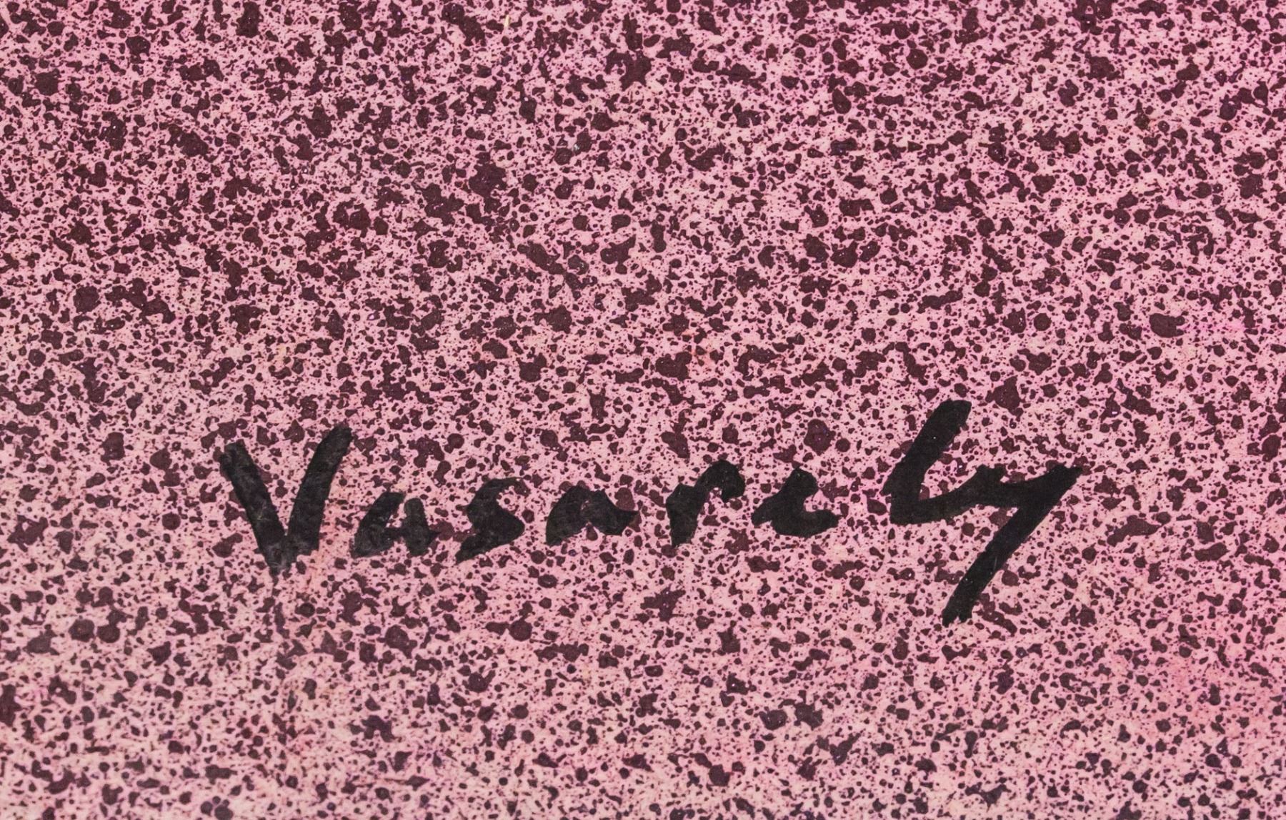 Oil on board. Featuring abstract composition of a rainbow blend of colors against a dark pink background. Signed "Vasarely" in the bottom left corner. Attributed to Victor Vasarely (1906-1997, Hungarian-French). 70 x 50 cm (27.75 x 19.5 in). Provenance: This lot carries limited provenance from a Southern Ontario estate