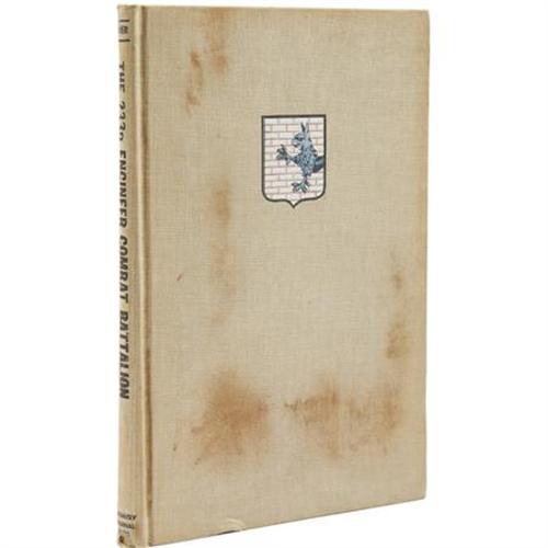 <B>Victor E. Weaver. </B></I><B><I>The 233d Engineer Combat Battalion 1943-1945</B></I></B></I><B>.</B></I> Washington: Infantry Journal Press, 1947.<BR> <BR>First edition. Octavo. 160 pages. Rosters including battle casualties, gallantry award winners, commendations, and troop rosters. Illustrated with photographs.<BR><BR>Original tan cloth with titles in black on the spine and a color vignette of the battalion's distinctive insignia on the front board. Color maps used as endpapers. Moderate soiling to front board, general shelf wear and a small area of loss at the foot of the spine, with small dents to the lower edge of the boards. Contents sound. Very good.<BR><BR><BR><b>Shipping:</b> Books & Catalogs (<a target="_blank" href="http://www.heritageauctions.com/common/shipping.php">view shipping information</a>)