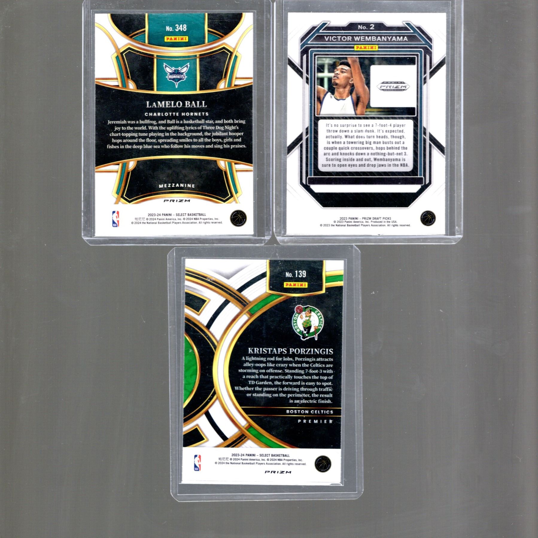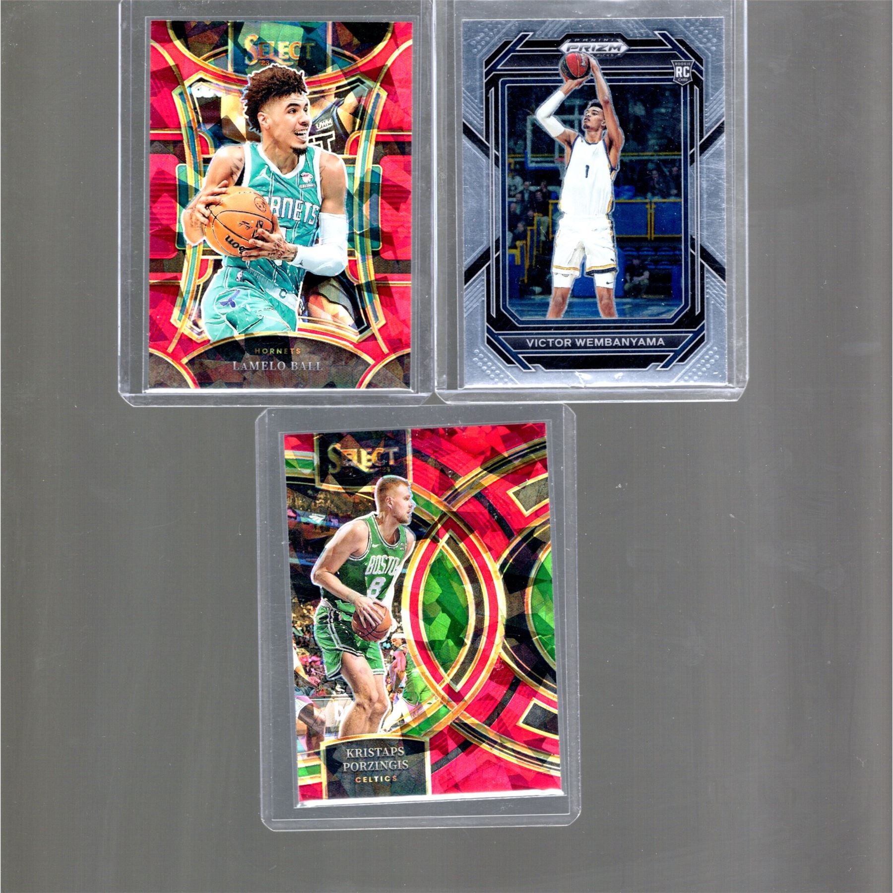 Victor Wembanyama Prizm Draft Picks, Kristaps Porzingis Red Cracked Ice Premier, & Lamelo Ball Red C