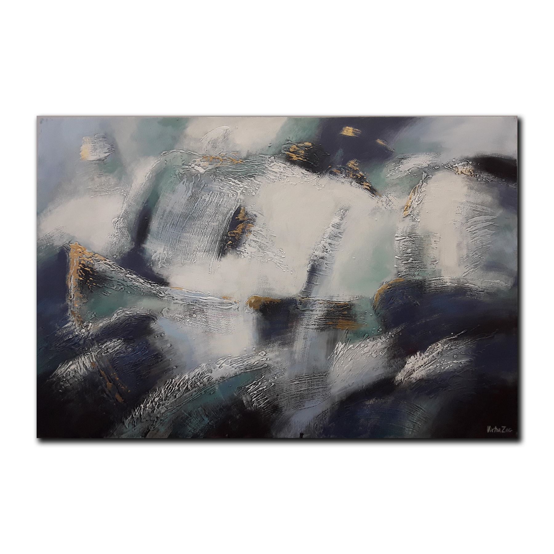 Original abstract acrylic on canvas painting. An abstract style painting, done in both dark and light colours, with gold and white texturized accents. This is an exclusive one time opportunity to acquire this original Victor Zag painting for this reserve price. The price that this piece is being offered at, is an extreme discount for the quality of this incredible work.