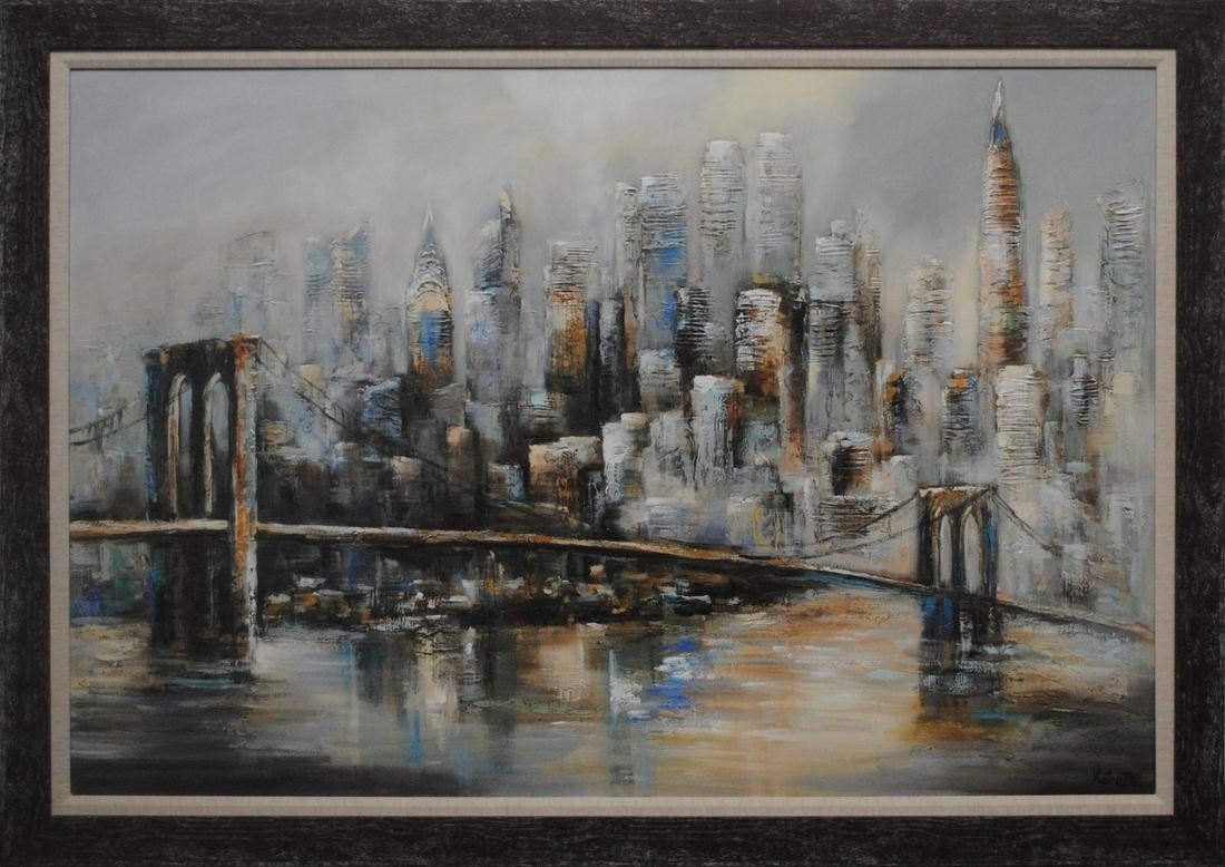 Victor Zag's "New York In Abstract" original acrylic on canvas painting. This has been professionally custom framed with an inner frame liner.