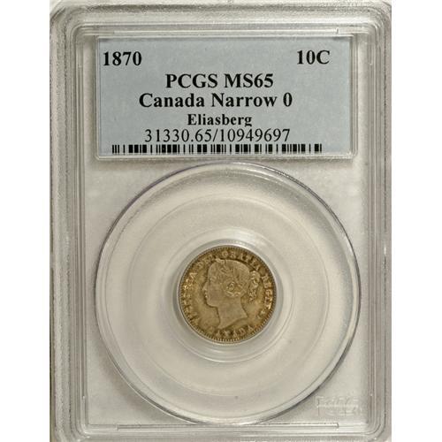 Victoria 10 Cents 1870 Narrow 0, KM3, MS65 PCGS Eliasbe