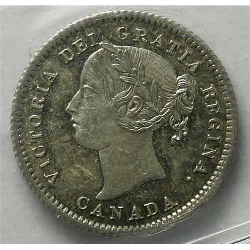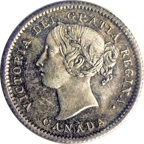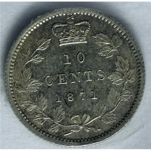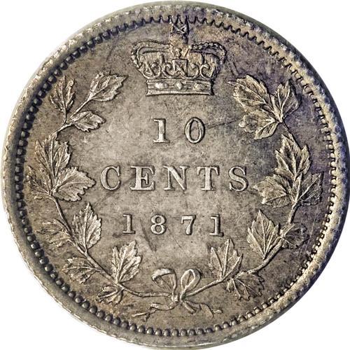 <B>Victoria 10 Cents 1871, </B></I>KM3, MS64 ICCS, lightly toned and extremely well-struck, the lustrous bust gives a pleasing cameo contrast to the patina in the fields. Very rare date in this superior grade.<BR><I>From the Dominion Collection.</B></I>
