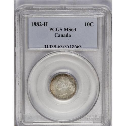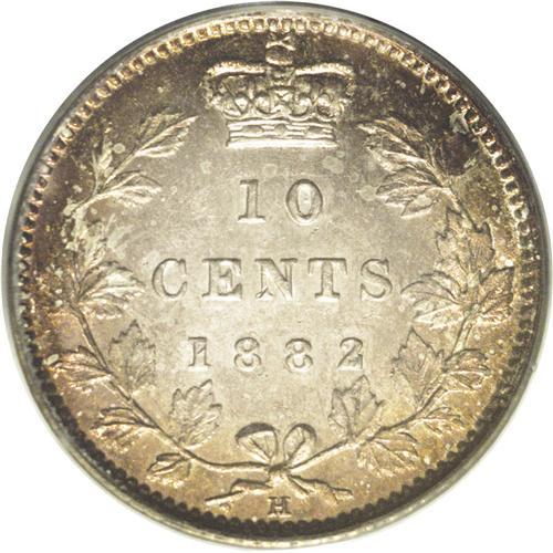 <B>Victoria 10 Cents 1882H, </B></I>KM3, MS63 PCGS, a choice, original coin with that perfect blend of peripheral toning and full mint luster.<BR><I>From the Dominion Collection.</B></I>