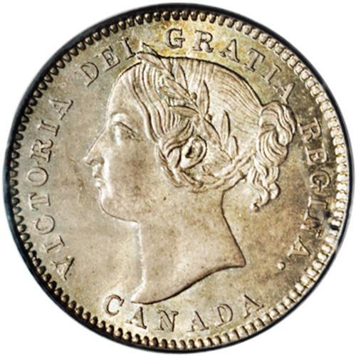 <B>Victoria 10 Cents 1883H, </B></I>KM3, MS66 PCGS, a wonderful coin with medium gray and blue-green patina. Very rare in this lofty quality with only one other example graded MS66 by PCGS. The Belzberg specimen was MS65 PCGS.<BR><I>From the Dominion Collection.</B></I>