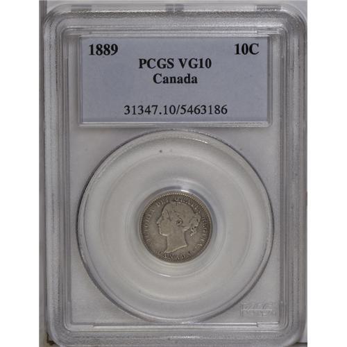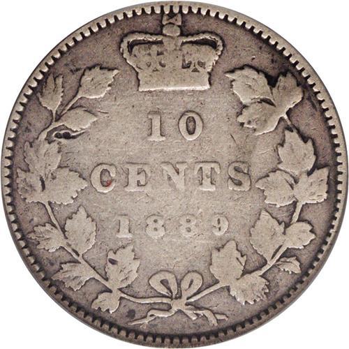 Victoria 10 Cents 1889, KM3, VG10 PCGS. An evenly worn